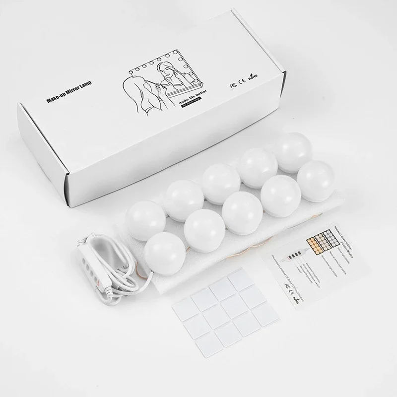 *Светодиодный зеркальный светильник Vanity в голливудском стиле, новейший дизайн, усовершенствованная версия, более красивый и удобный.*Usb-порт, лампы и источник питания могут быть подключены через USB многими способами, такими как ноутбук, блок питания, розетка, поэтому это очень удобно при использовании.*Регулировка яркости, яркость может регулироваться от яркого до темного, от темного до яркого, в соответствии с вашими потребностями.*Он оснащен функцией памяти, записывает последний режим освещения, когда вы используете его, и это тот же режим освещения, когда вы используете его снова.*Максимальное расстояние между двумя лампами составляет около 33 см, что делает его подходящим для большинства зеркал.*Провод регулировки длины, минимальное расстояние между двумя лампочками может быть сократилась к составляет около 1,7 см, если вы думаете, что это слишком закрыт, он может быть удлинен, в соответствии с вашими запросами, очень прост в управлении.*Самое главное, что излишки проводов скрыты в лампочках, которые не видны снаружи, чтобы ваше зеркало было аккуратным, красивым и элегантным.*Предусмотрены двухсторонние ленты и присоски, лампочки могут быть непосредственно и быстро наклеены на зеркала с лентами или присосками.*12 В постоянного тока входное напряжение, безопасно для использования.*Хороший охлаждающий эффект, энергосбережение, длительный срок службы.*Мягкий светильник, высокая светоотдача, отсутствие теплового излучения, отсутствие мерцания, отсутствие пятен, защита глаз, Профессиональный светильник для макияжа.*Используется для макияжа, заполняющий светильник, украшение, зеркальная декоративная лампа, лампа для украшения сцены, лампа для украшения шкафа, студийная декоративная лампа и так далее.*Подходит для свадьбы, дня рождения, Дня Святого Валентина и других праздников.