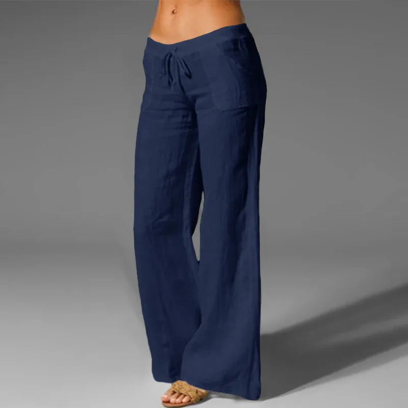 Брюки женские с широкими штанинами, повседневные хлопково-льняные с...
