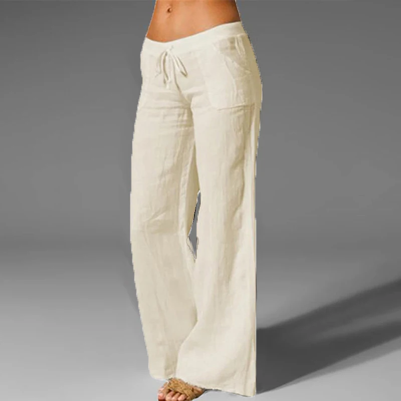 Брюки женские из хлопка и льна, модные белые повседневные свободные...