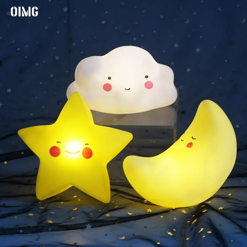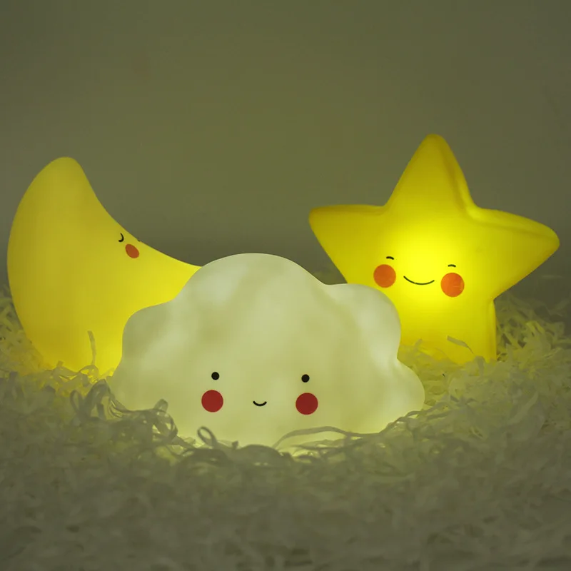 Милый светодиодный ночник со светящимися звездами, смайликами, облаками, солнцем, луной, детский светодиодный светильник для кормления, детская игрушка для сна, подарок для детей