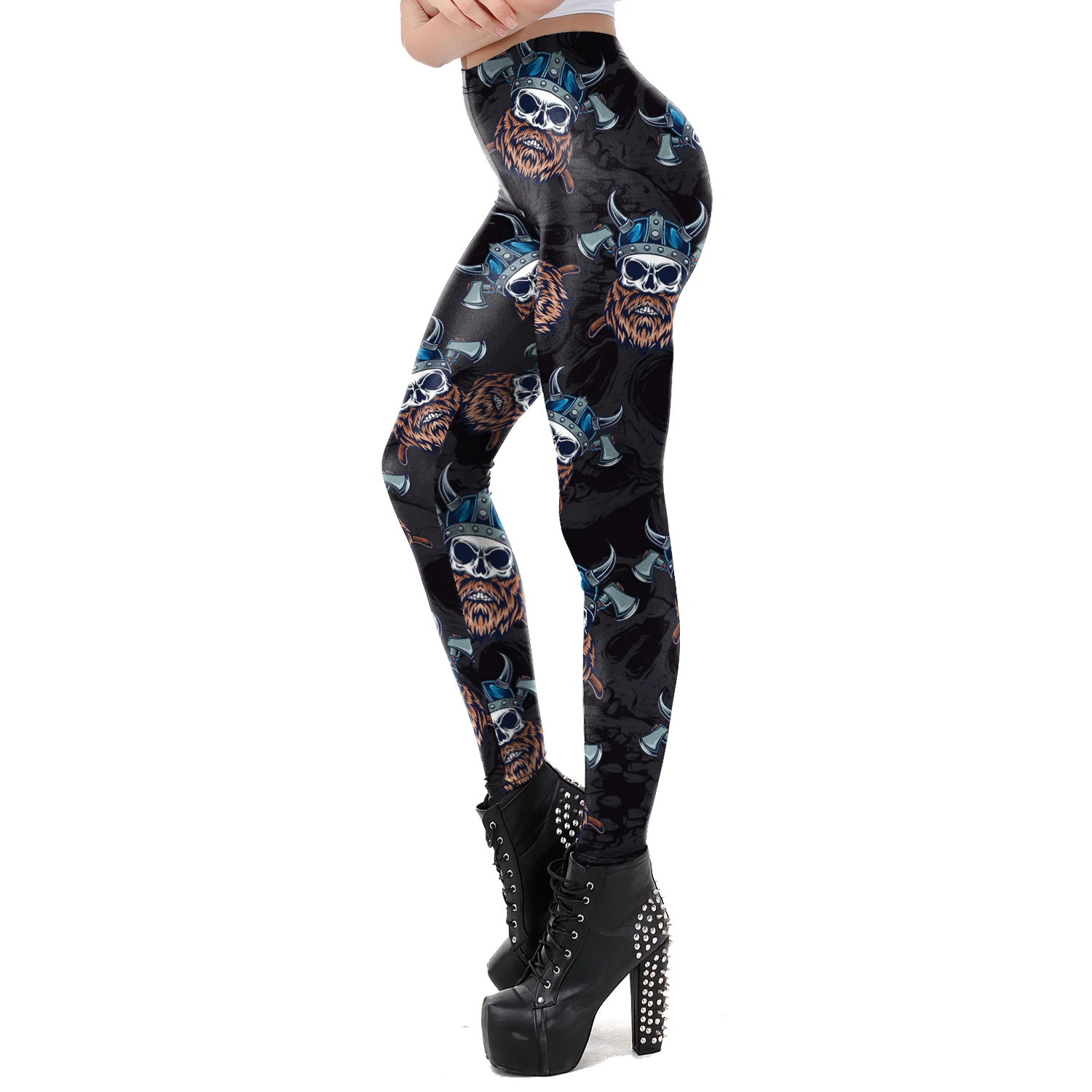 Готические темные леггинсы с черепомПринимаем Оптовые прямые поставки OEM и ODM