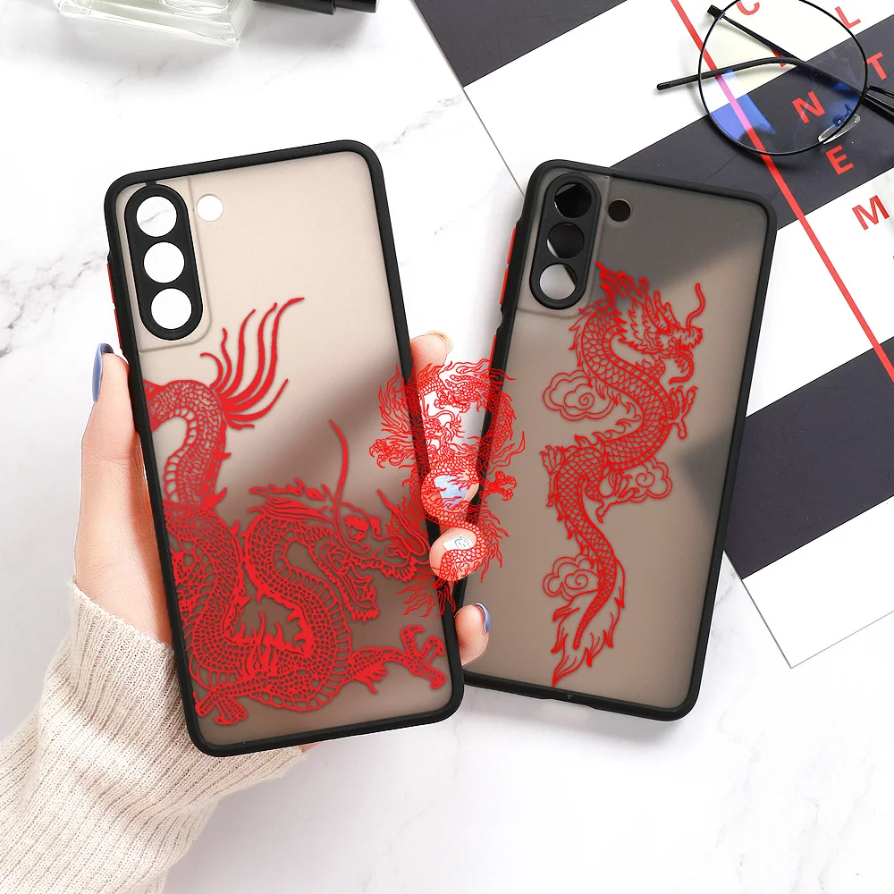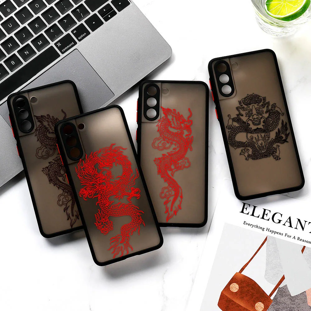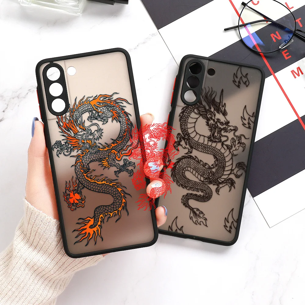 Матовый чехол с ярлыком для Samsung A52, чехол с рисунком дракона д...