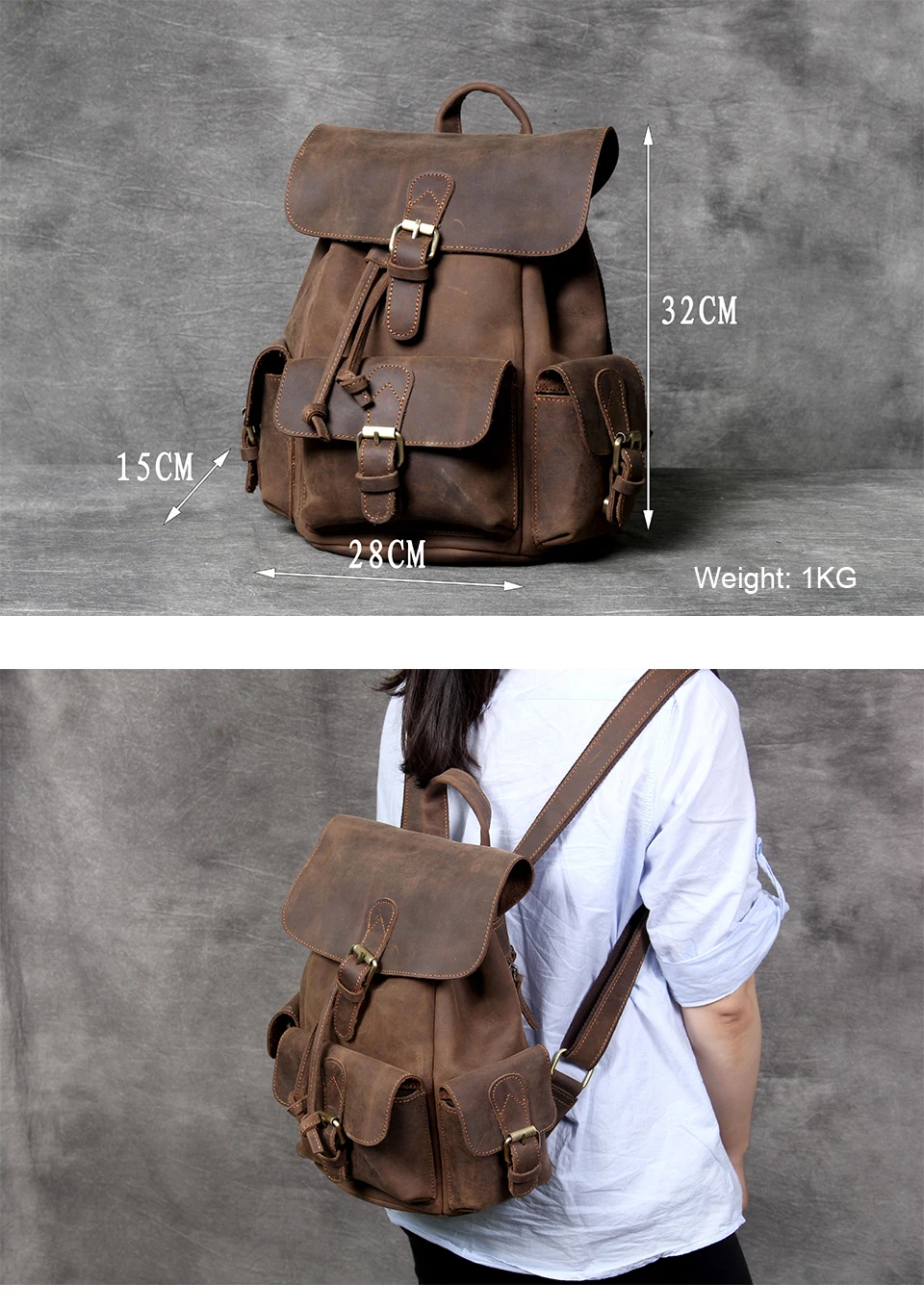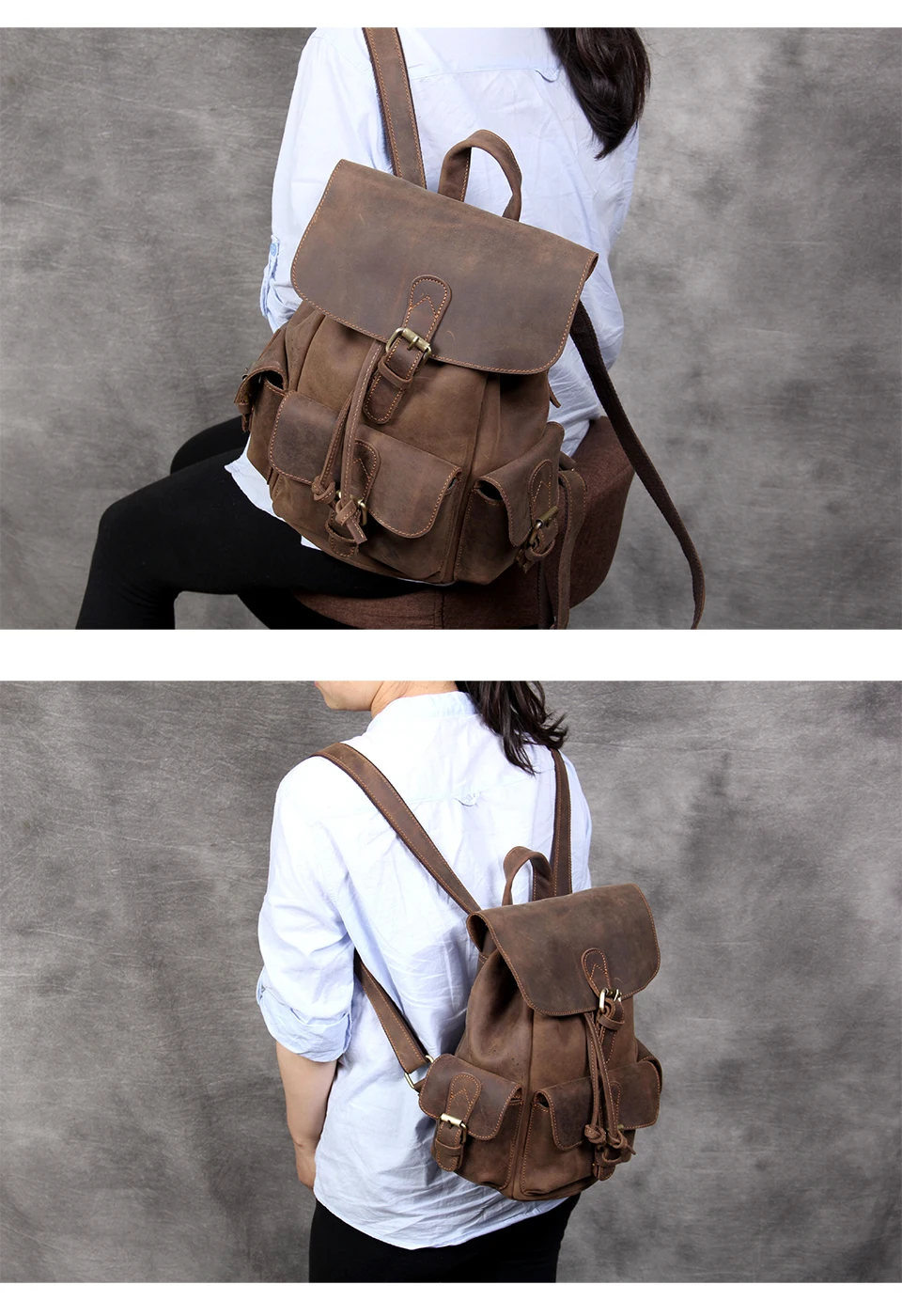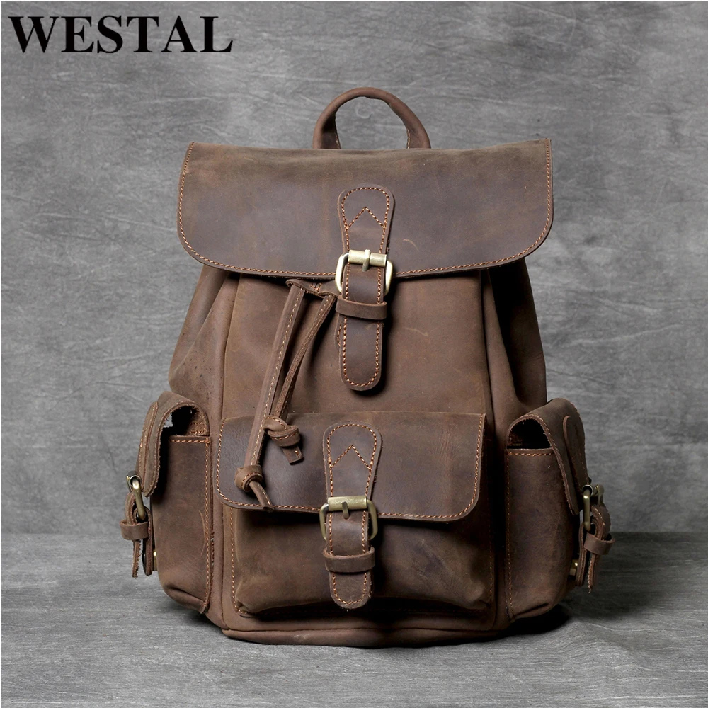 Женский кожаный рюкзак WESTAL Crazy Horse, Вместительная дорожная сумка для девушек, модный школьный ранец для ноутбука