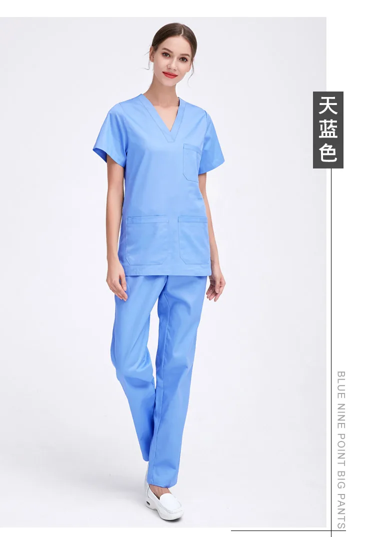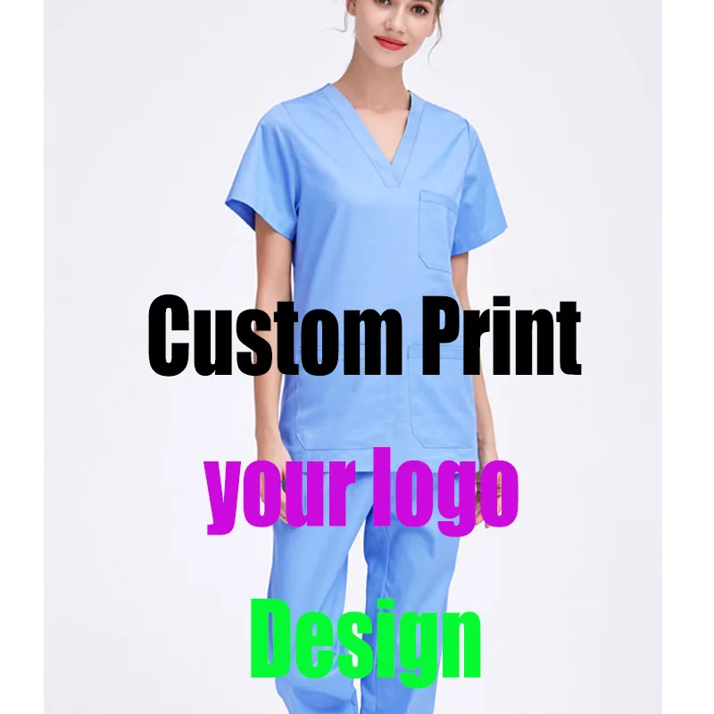 Пользовательские печатные логотипы, униформа медсестры, наборы, рабочая больница, сшитая на заказ, одежда для доктора, наряд, топ + штаны, хлопок, медицинский комплект