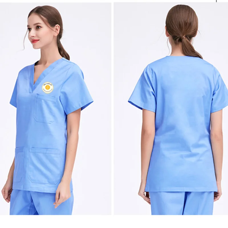 Комплекты медицинской униформы медсестры с пользовательским логотипом, рабочая одежда, одежда для врачей больницы, одежда на заказ, топ + штаны, хлопковый медицинский комплект