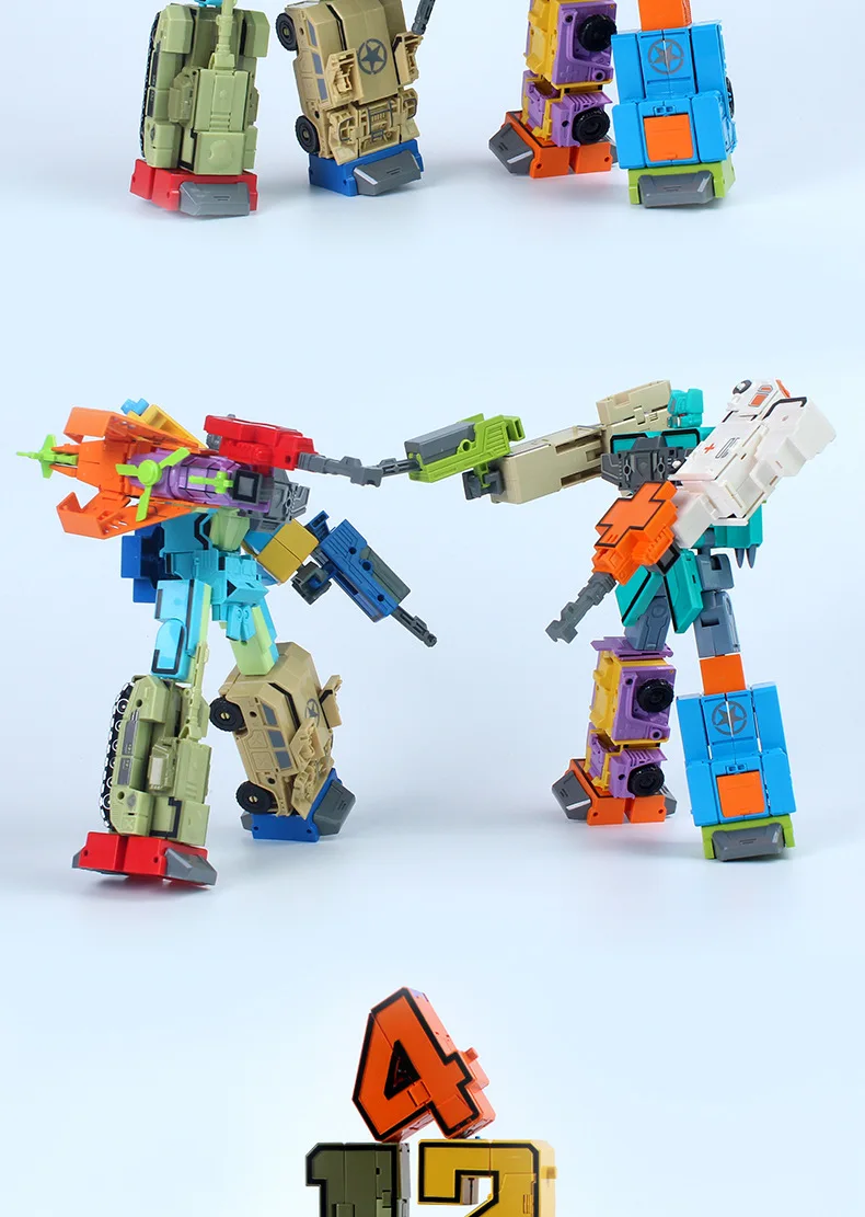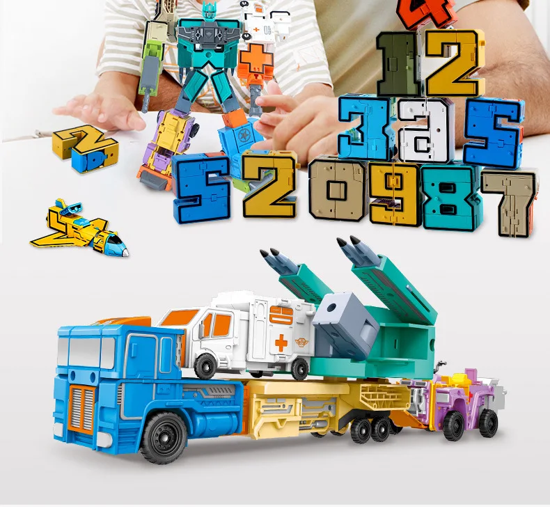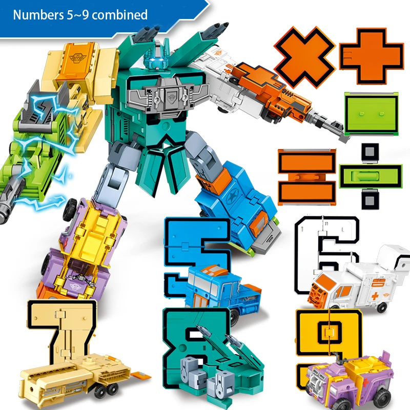 Детский строительный блок с цифрами, Обучающие сборные строительные блоки, экшн-фигурка робота, автомобиль-трансформер, деформирующий искусственное аниме