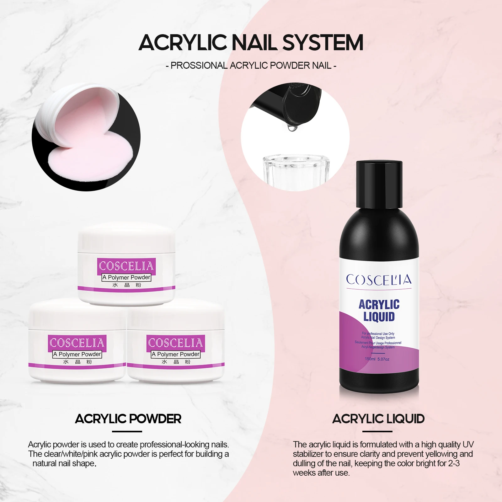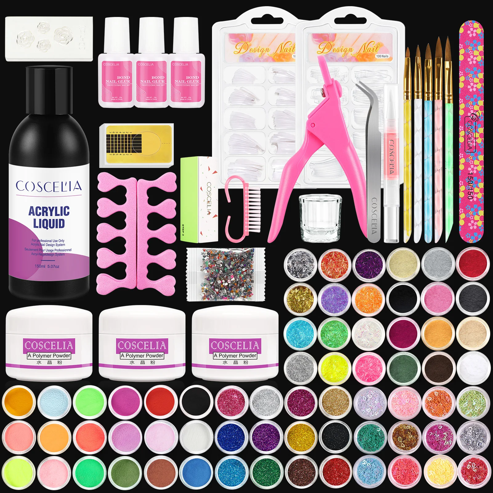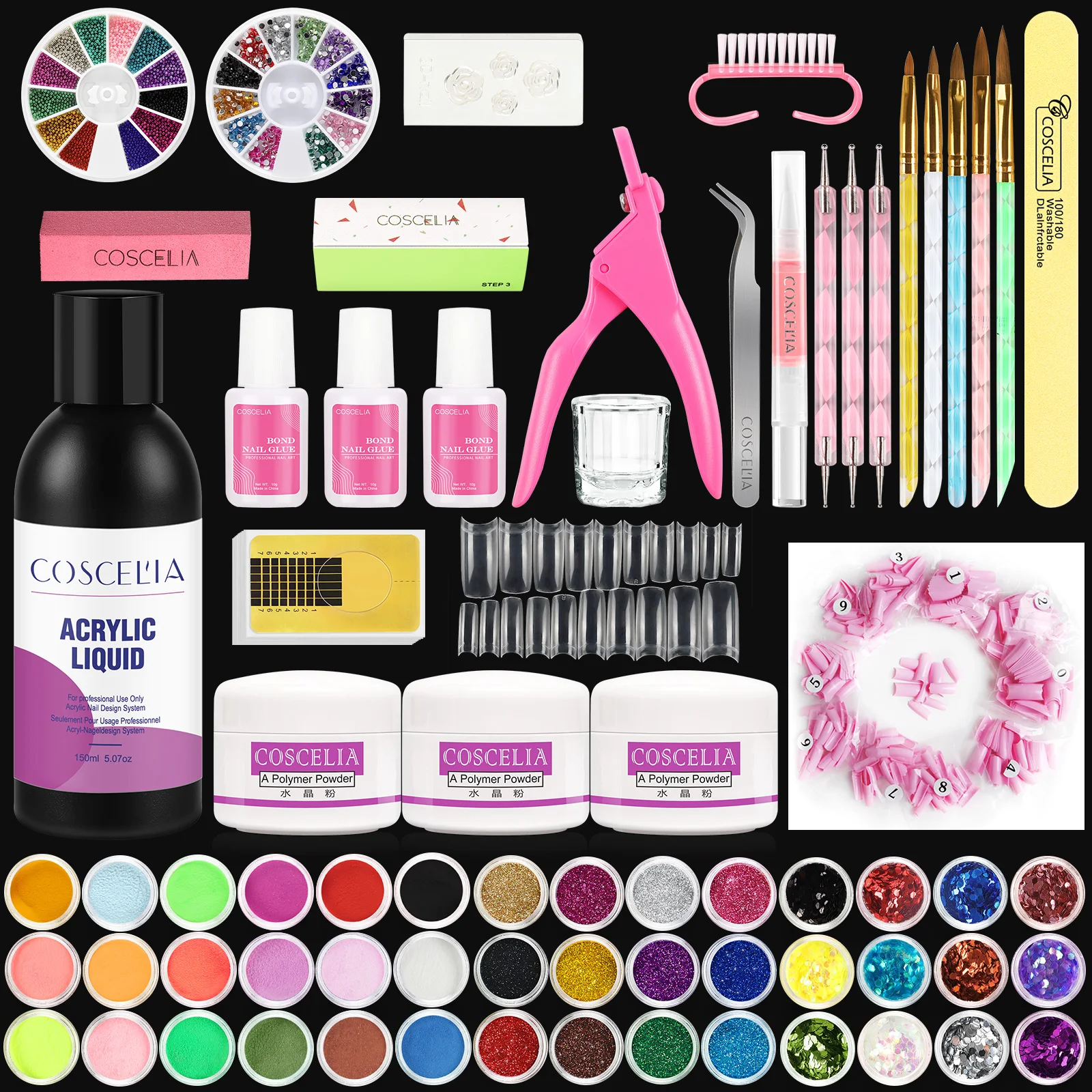 Набор акриловых ногтей COSCELIA с украшениями для дизайна ногтей, позолоченный акриловый порошок, все для маникюра, набор профессиональных инструментов
