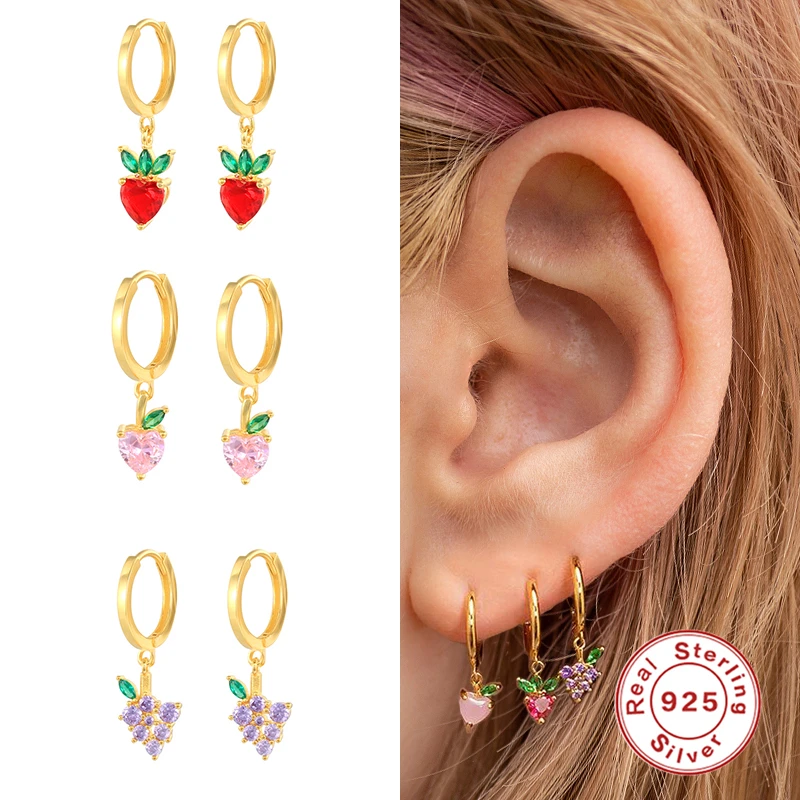 MC 100% реальные 925 стерлингового серебра серьги с цирконием, типа "банан" виноград персик Apple оранжевый Подвески новых летних фруктов для женщин серьги-обручи