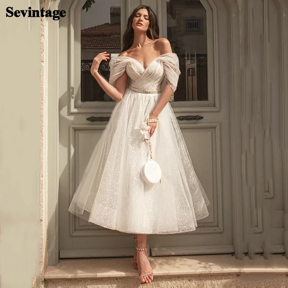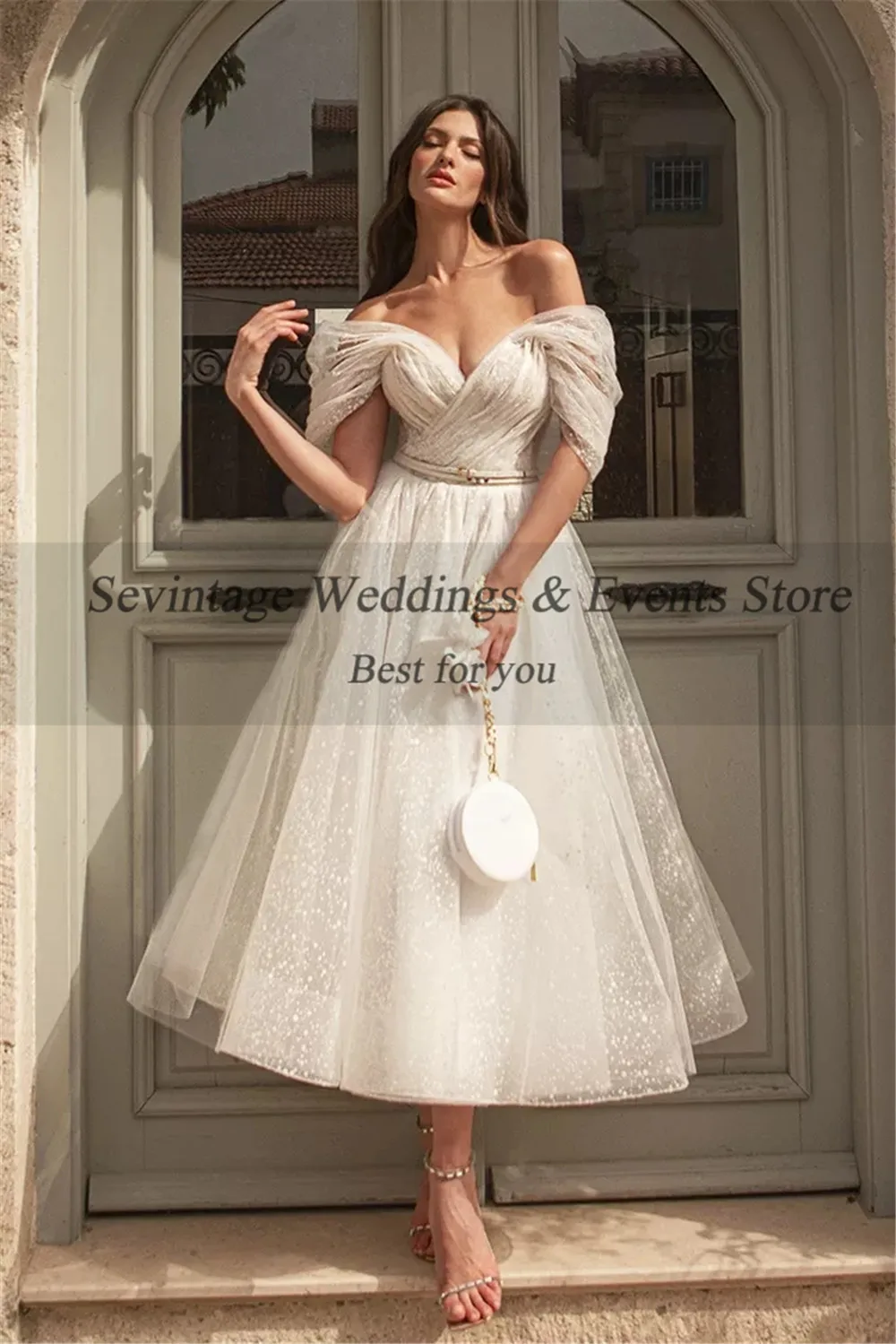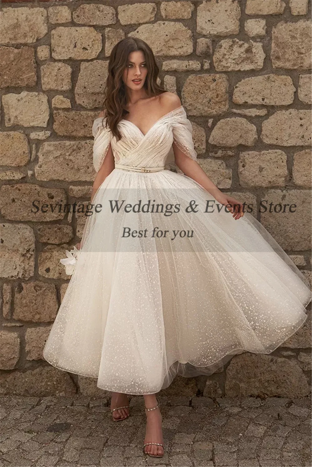 Платье для выпускного Sevintage, из блестящей тюли цвета слоновой кости, с открытыми плечами, ТРАПЕЦИЕВИДНОЕ, вечерние платья для выпускного вечера