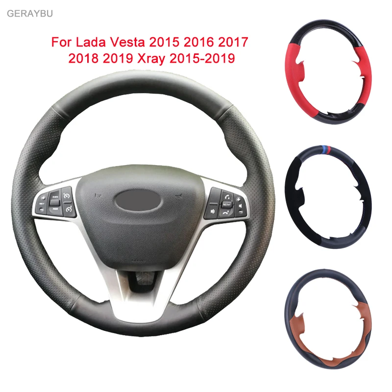 GERAYBU изготовленный на заказ DIY черный кожаный чехол рулевого колеса автомобиля ручной работы для Lada Vesta 2015 2016 2017 2018 2019 Xray 2015-2019