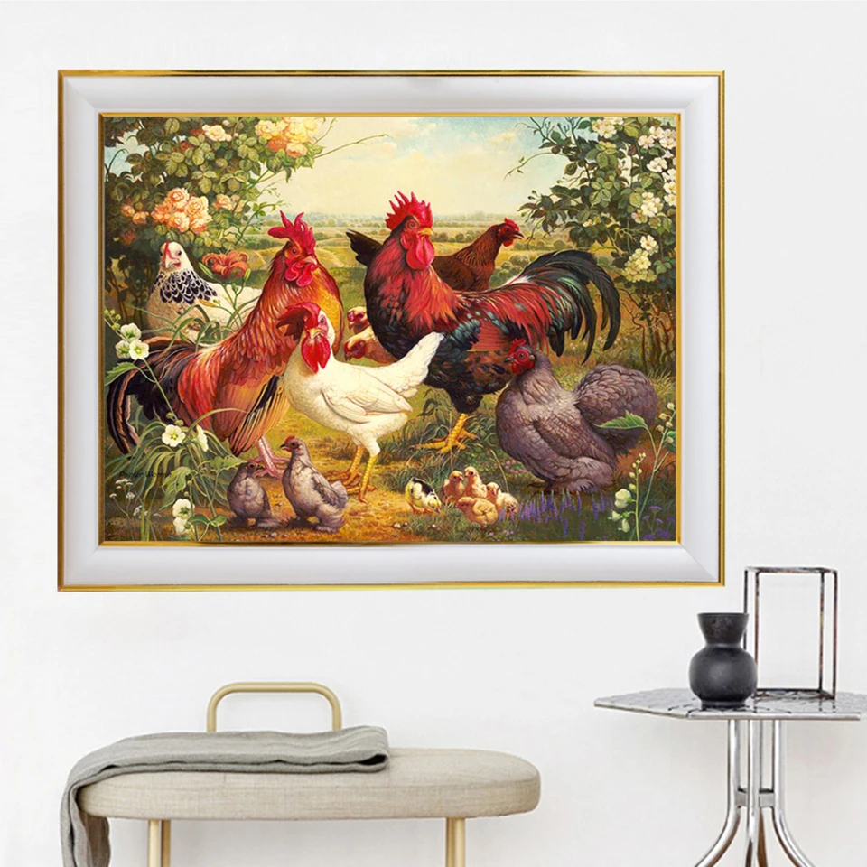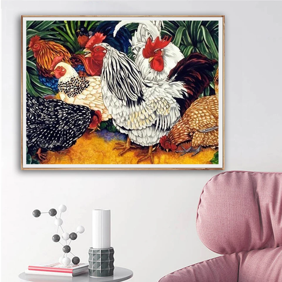 Алмазная живопись 5D "сделай сам", животное, петух, ферма, квадратнаякруглая Алмазная вышивка, набор, мозаичная картина, картина, украшение для дома, подарок