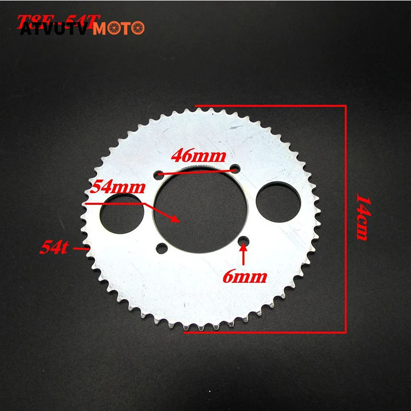 Задняя звездочка T8F 54 T 54 мм с внутренним диаметром и 54 зубьями для карманного велосипеда 47cc 49cc, мини-мотоцикла, квадроцикла, скутера