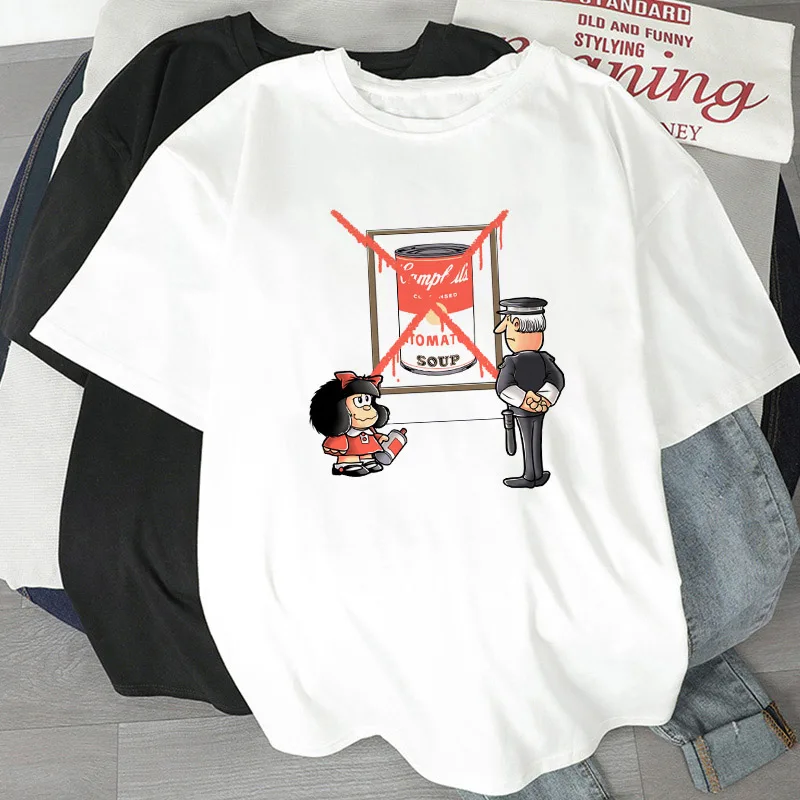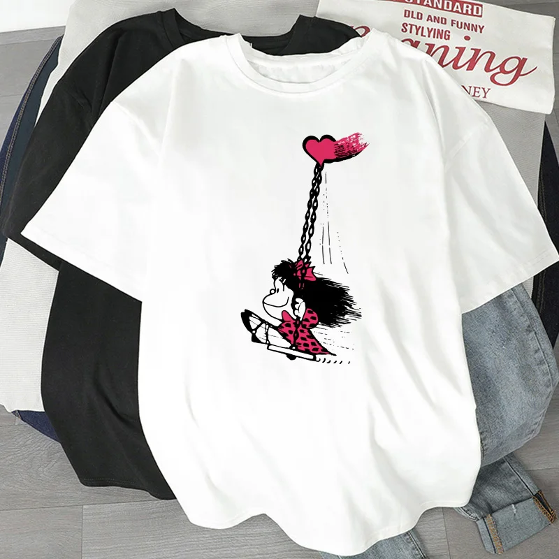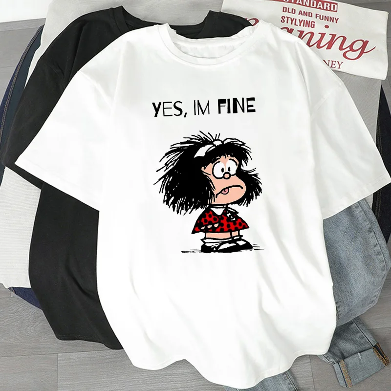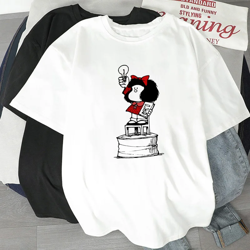 Женская футболка с мультипликационным принтом Mafalda, Женская Повс...