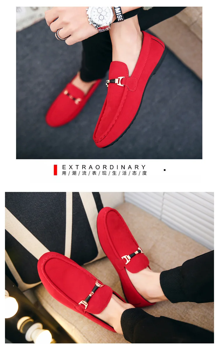 Мужские дизайнерские туфли, мягкие Нескользящие Мокасины, без застежки, повседневная обувь для вождения, красные