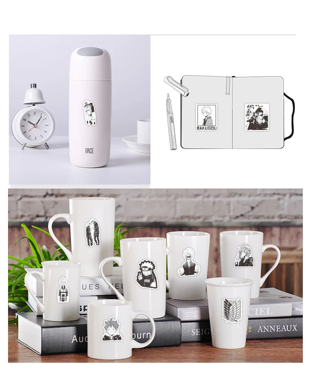 103050 шт. аниме-наклейки s, черно-белые Японские Аниме-наклейки DI...