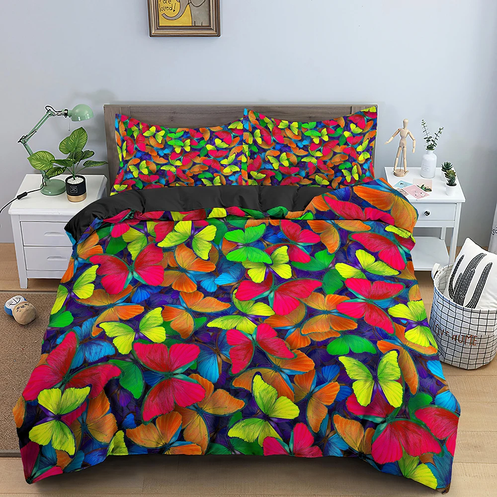 Мягкое постельное белье бабочки цветочные леггинсы с животным узором, Постельное белье, стеганое одеяло, размеры: комплект для обычной двухстальной кровати King Queen Размеры постельное белье