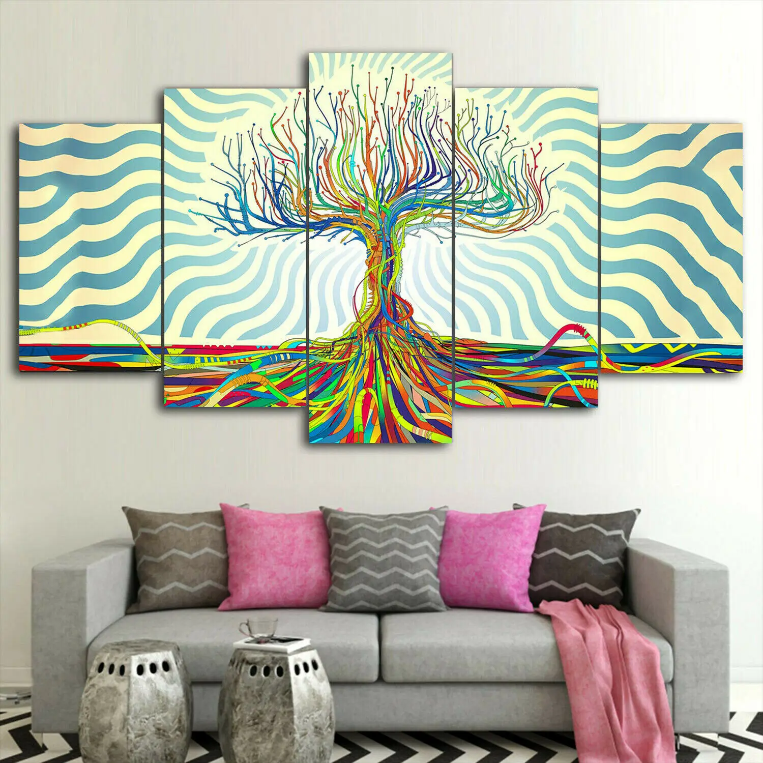 Абстрактный цвет жизни деревья 5 панелей холст печать настенный художественный плакат украшение дома HD картины Домашний Декор без рамки картины