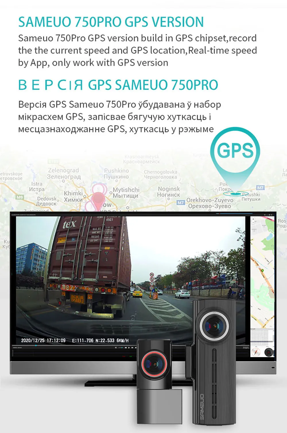Sameuo U750 pro поставляется со встроенным GPS. Камера GPS dash точно записывает траекторию движения и скорость для просмотра позже. Он также позволяет интеллектуальному контролю за авариями, так как он активируется, когда происходит воздействие, и записывает видео до 1 минуты. Устройство также позволяет записывать исключительные временные промежутки видео. Примечание: версия GPS является необязательной, она работает только в версии GPS. Пожалуйста, проверьте отслеживание GPS по таблице procesure. Также можно проверить только через приложение Roadcam и компьютер. Пожалуйста, свяжитесь с нами, чтобы получить его.