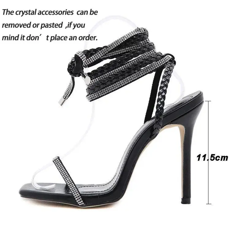Сандалии стразы женские на высоком каблуке, босоножки с ремешком на...
