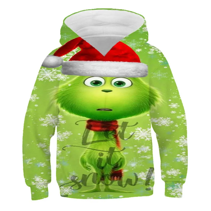 Толстовка Grinch для мальчиков и девочек, с 3D принтом, с длинным р...