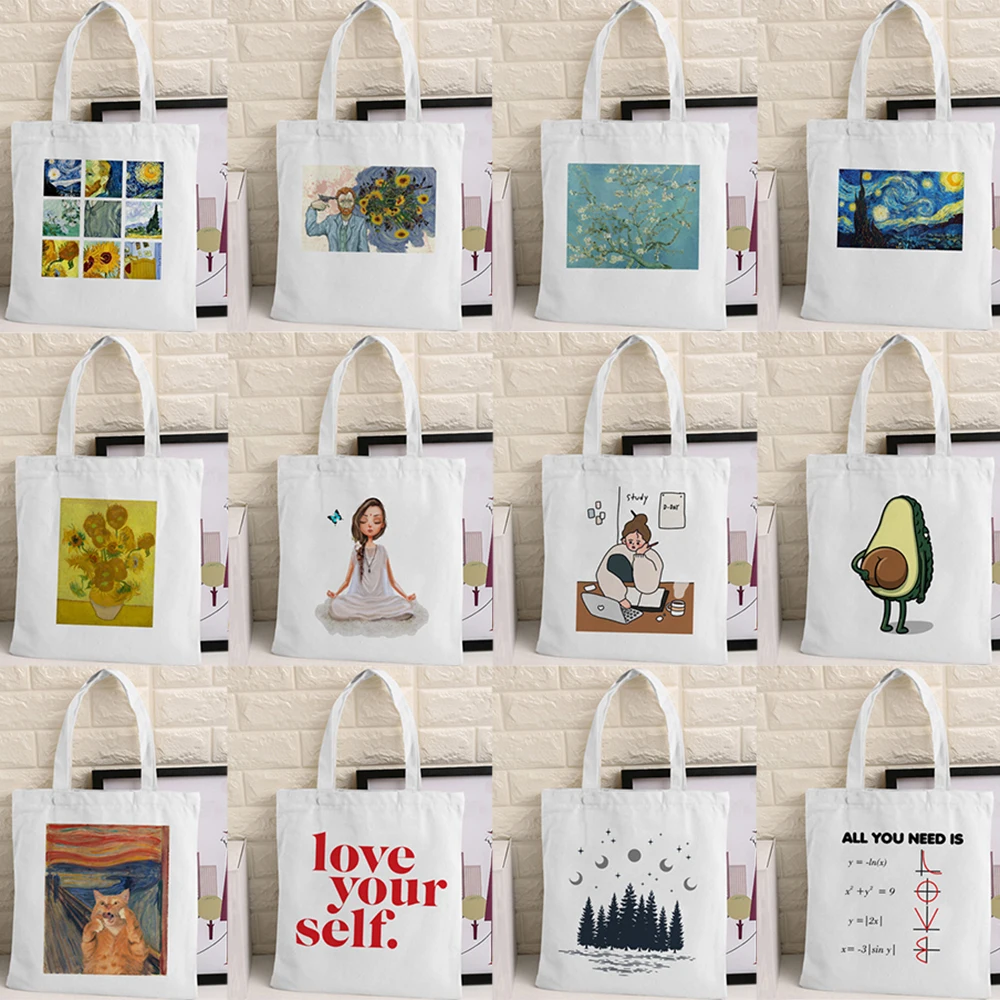 Сумка-шоппер Van Gogh с графическим рисунком, Женская холщовая сумочка-Шоппер в стиле Харадзюку, забавная Экологически чистая вместительная сумка на плечо Ulzzang