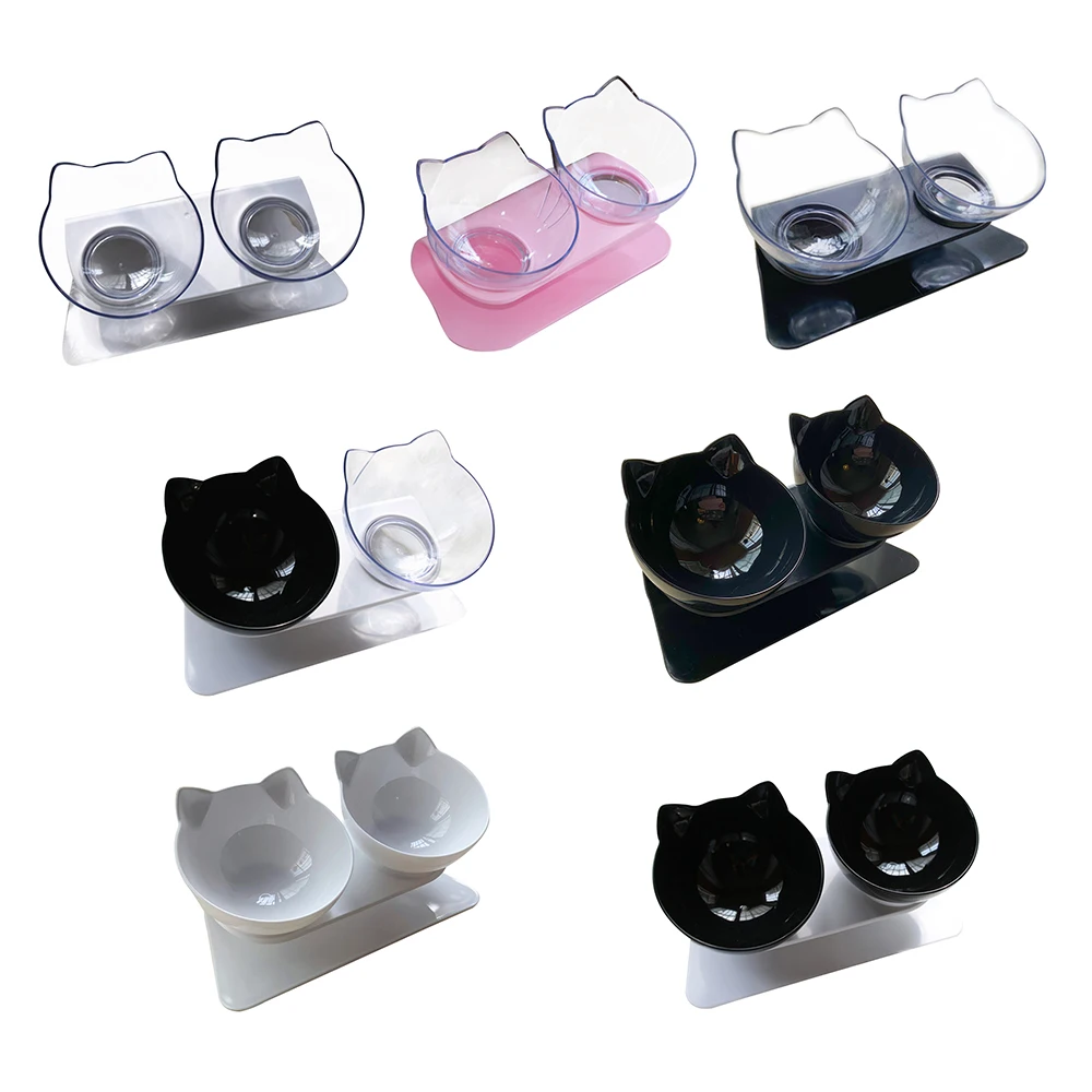 Кота Еда чаши двойная миска для кошек аксессуары для щенков шея Защ...