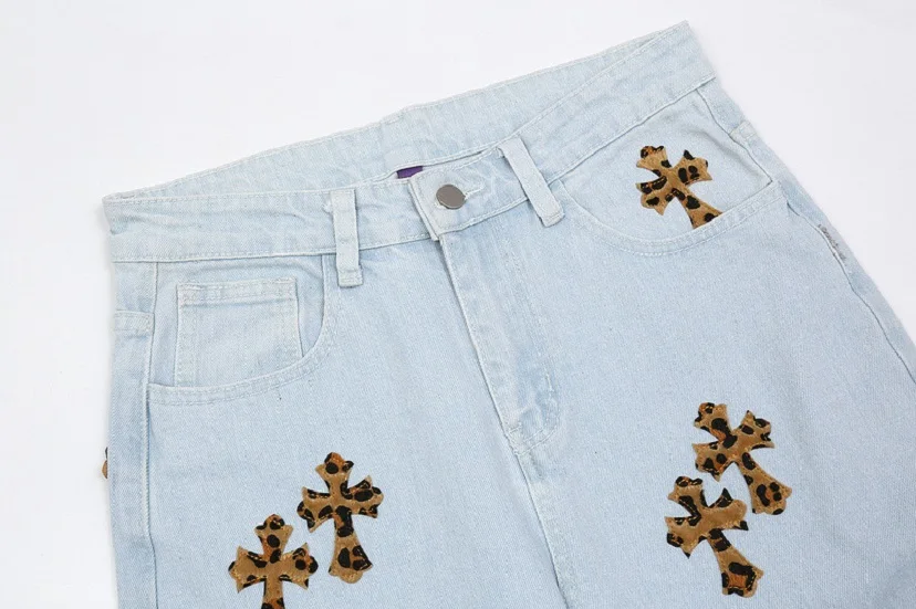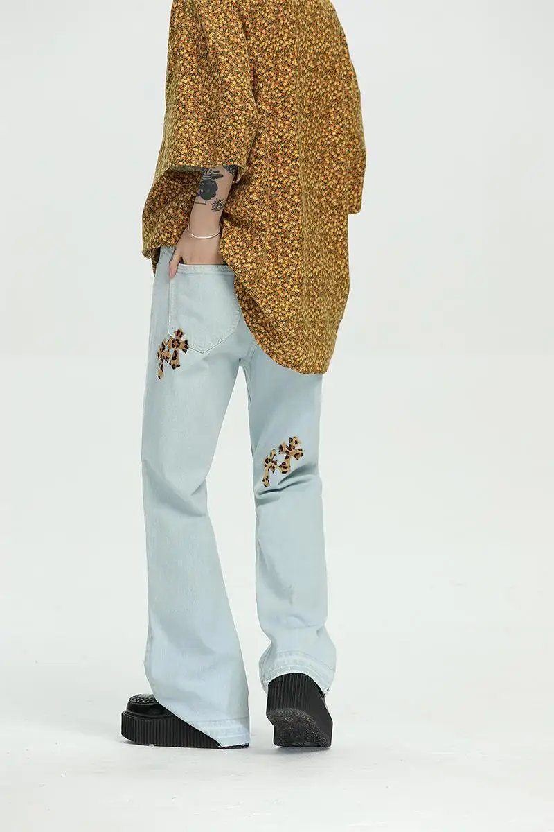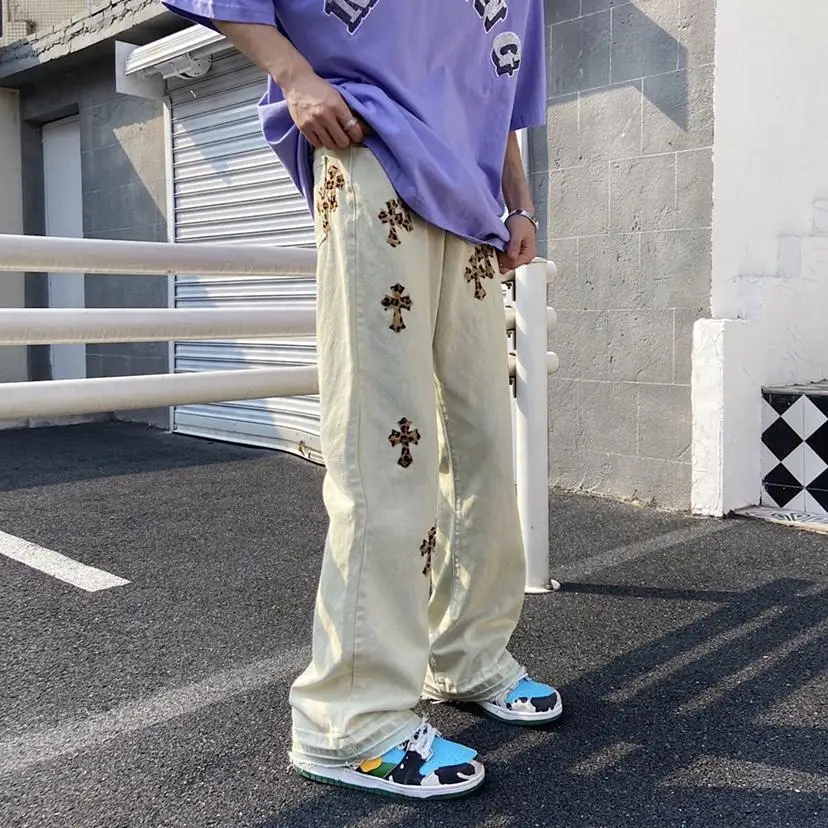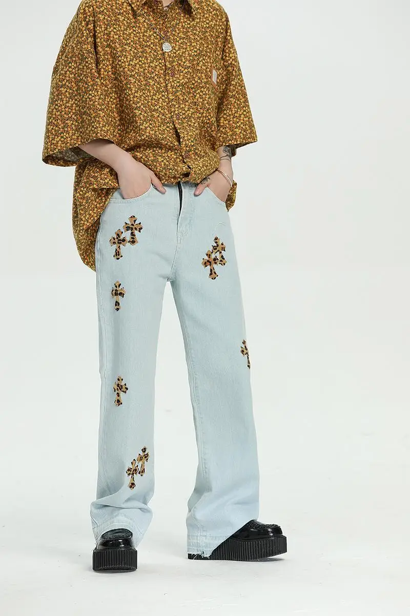 Джинсы мужские, женские, широкие, с вышивкой, в стиле хип-хоп