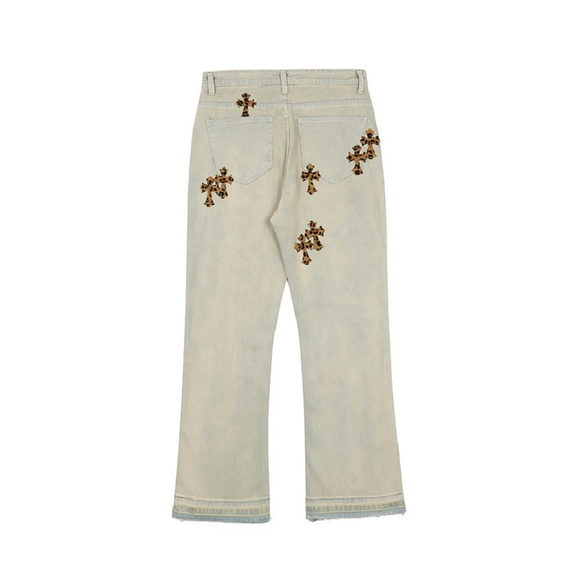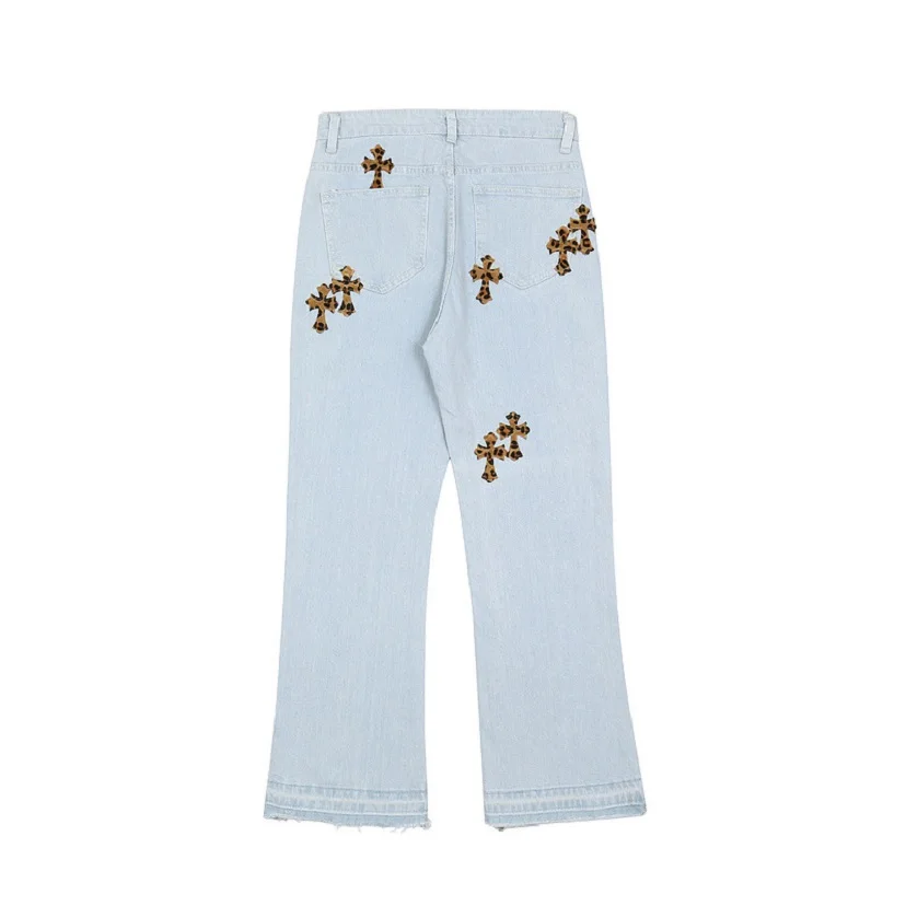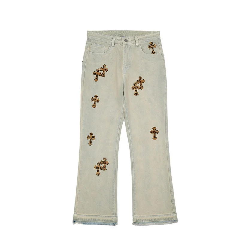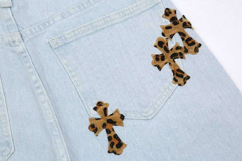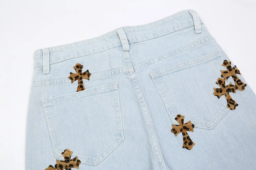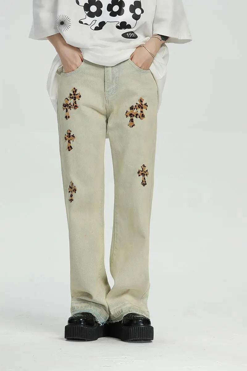 Джинсы мужские, женские, широкие, с вышивкой, в стиле хип-хоп