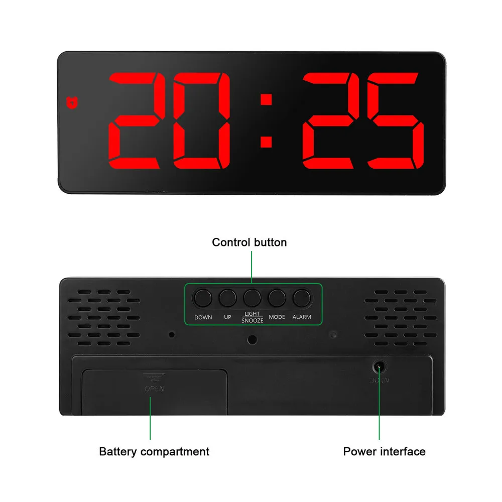 Особенности: 1. Большой Цифровой Дисплей: 3 ''светодиодный Большой цифровой дисплей, четкий и удобный визуальный эффект, он автоматически тускнеет от 10:00 pm-6:00 am. При подключении к usb-кабелю светодиодный светильник всегда будет включаться. При нажатии кнопки «SNOOZELIGHT» дисплей может держать освещение в течение 5 секунд. 2. Тихая Спящая среда: В отличие от Механическая сигнализация, которая продолжает тикать, влияет на качество вашего сна. Часы тихие, что позволяет избавиться от шума ночи и спокойно спать. 3. Питание от сети переменного тока и батареи резервного копирования: вставьте шнур питания USB (не включая адаптер) или вставьте три батарейки AAA для зарядки часов. Во время резервного копирования батареи экран будет черный, настройки будильника и Времени останутся, и будильник будет по-прежнему звучать. При использовании питания батареи, может быть активирован, и дисплей может быть включен, хлопая руками, и он автоматически выходит После 16s. 4. Сигналы тревоги с повтором: сигналы тревоги позволяют установить два отдельных времени пробуждения. Время повтора может быть установлено, не нужно вручную выключать будильник. Разбудите вас в разное время, сделайте вашу жизнь легкой и удобной. 5. Стильный и простой дизайн: Размеры: 16 × 2,5 × 6 см, стильный и простой мини зеркальные часы-будильник может украсить ваш спальня, гостиная. Характеристики: Тип: цифровой будильник Материал: АБС-пластик Цвет корпуса: черный Цвет слов: белый, красный, зеленый Размер дисплея: 16 см * 6 см/6,3 дюйма * 2,4 дюйма Регулировка яркости: автоматически или вручную Формат времени: Переключение 12/24 часов Продолжительность повтора: 1-60 минут Температура: -10 ℃ ~ 50 ℃/14 °F ~ 122 °F Температурный режим: ℃/°F Порт USB для зарядки: 5 В Питание от 3 * AAA батарей (не включая) или USB кабеля 5 клавиш: режимы, будильник, вверх, вниз, Повтор/светильник Продукт Размеры: 16 см x 6 см x 2,5 см/6.3in x 2.4in x 0.98in Посылка включает в себя: 1 x цифровые часы 1 х USB кабель