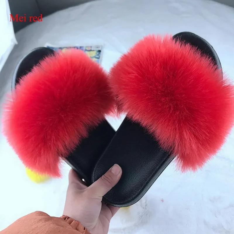 Сланцы женские из искусственного меха, меховые сандалии из лисьего ...