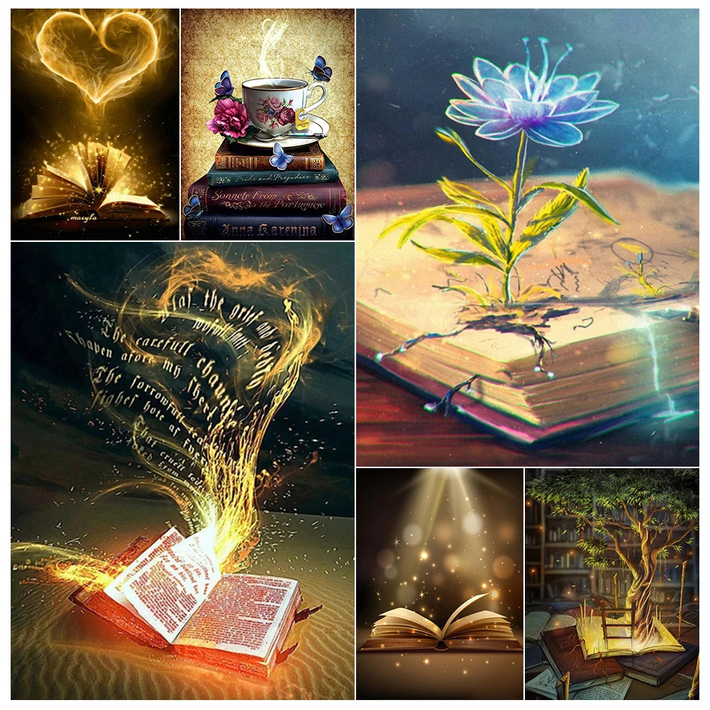 Алмазная 5d живопись сделай сам, Набор для вышивки Книга Фэнтези, полноразмернаякруглая мозаика, вышивка крестиком, цветочный ландшафт, домашний декор