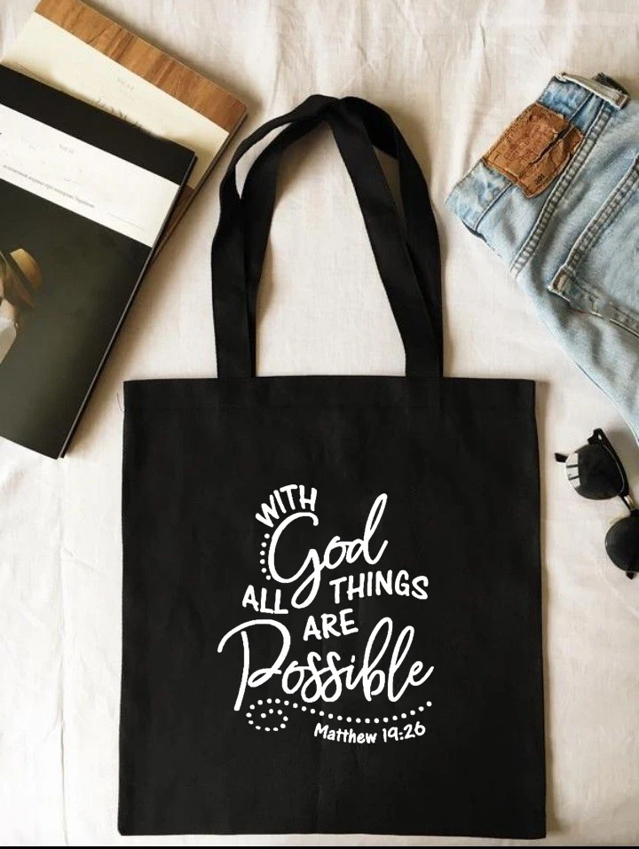 С Богом все возможные вещи, Холщовая Сумка-тоут с принтом для женщи...