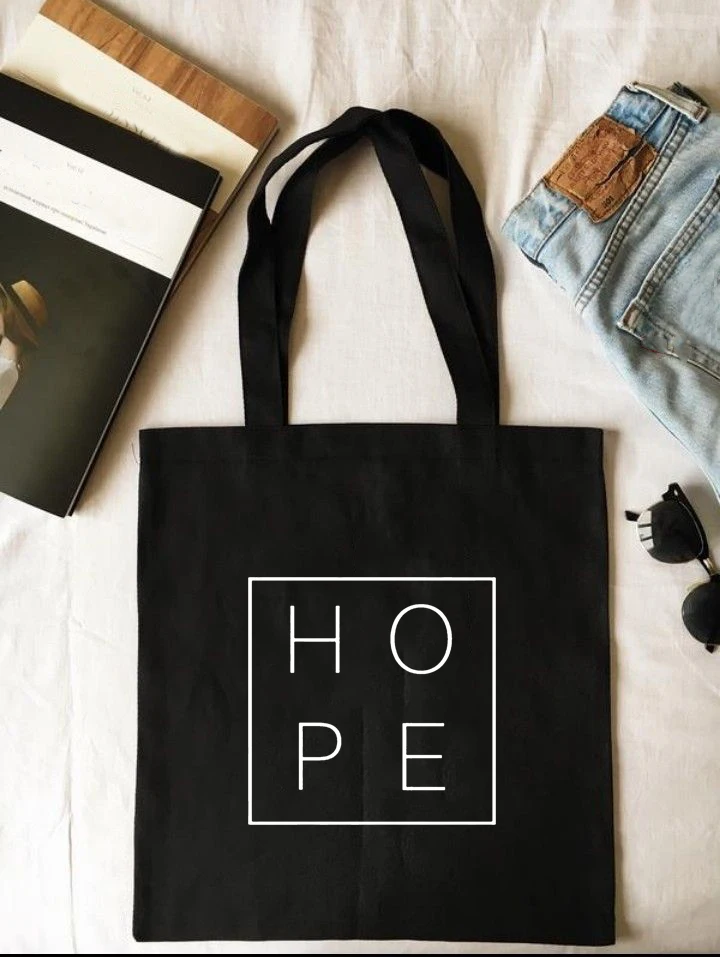 Сумка-тоут женская, тканевая, многоразовая, с буквенным принтом