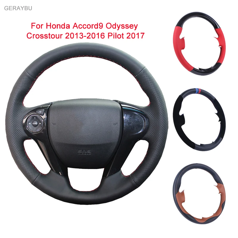 GERAYBU изготовленный на заказ DIY черный кожаный сшитый вручную чехол рулевого колеса автомобиля для Honda Accord9 Odyssey Crosstour 2013-2016 Pilot 2017