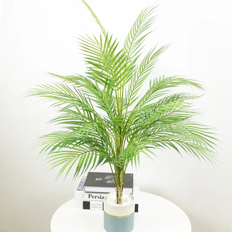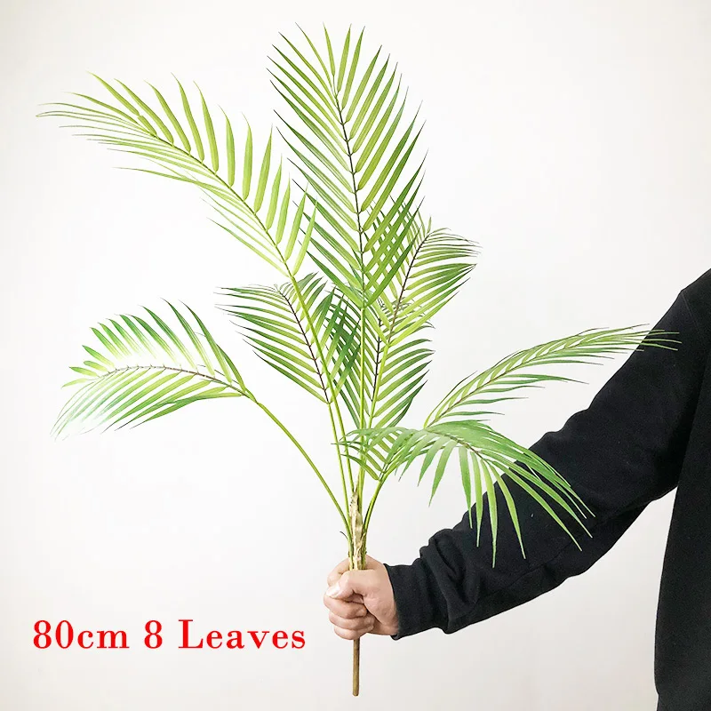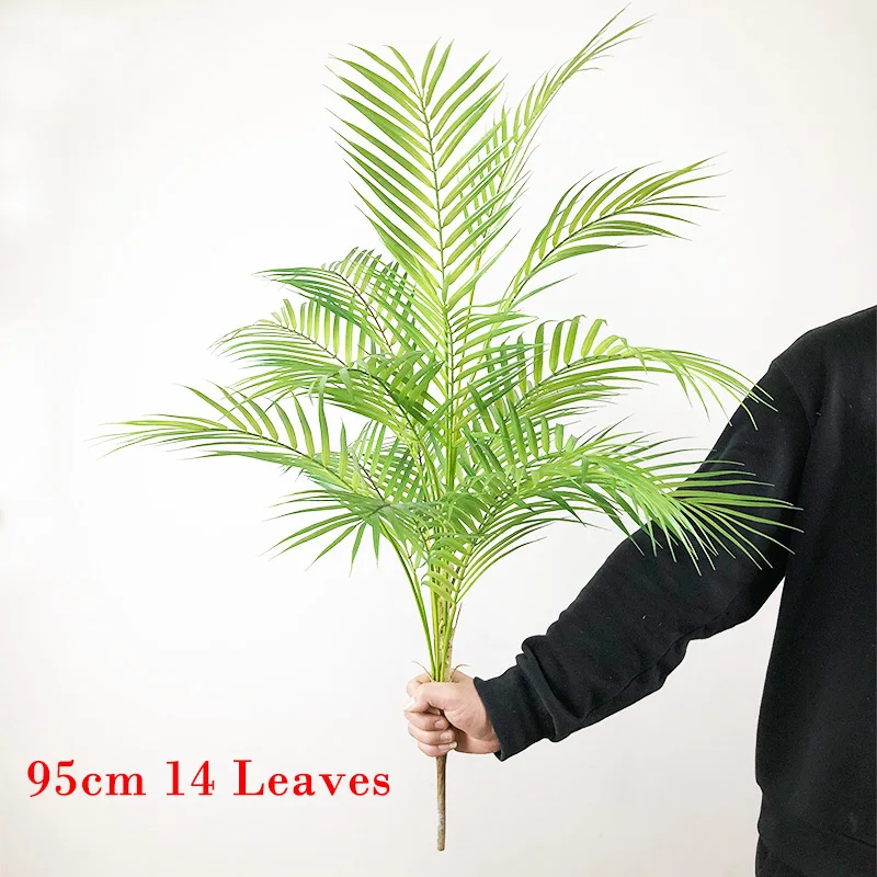 Большое искусственное пальмовое дерево 80-98 см, высокие тропические растения, ветки, искусственные Пальмовые Листья, настоящие на ощупь пластиковые листья для дома, сада, свадьбы