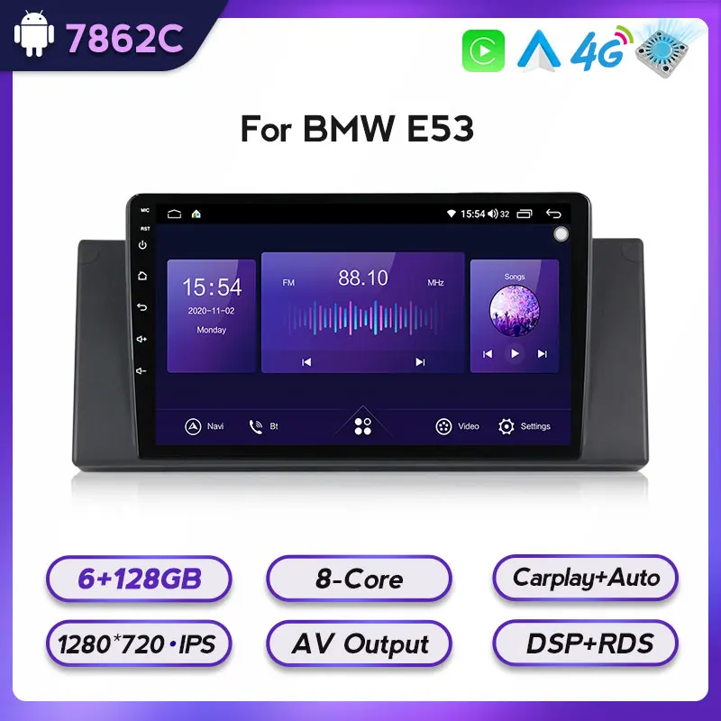 Охлаждающий вентилятор DSP 6 ГБ + 128 Гб, Android 11 для BMW E39 M5 1999-2003, GPS, автомобильный мультимедийный видеоплеер, стерео радио, carplay, Wi-Fi, SWC