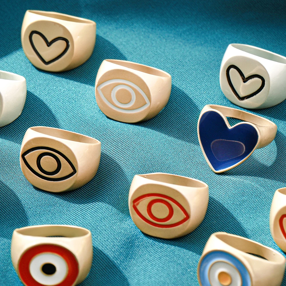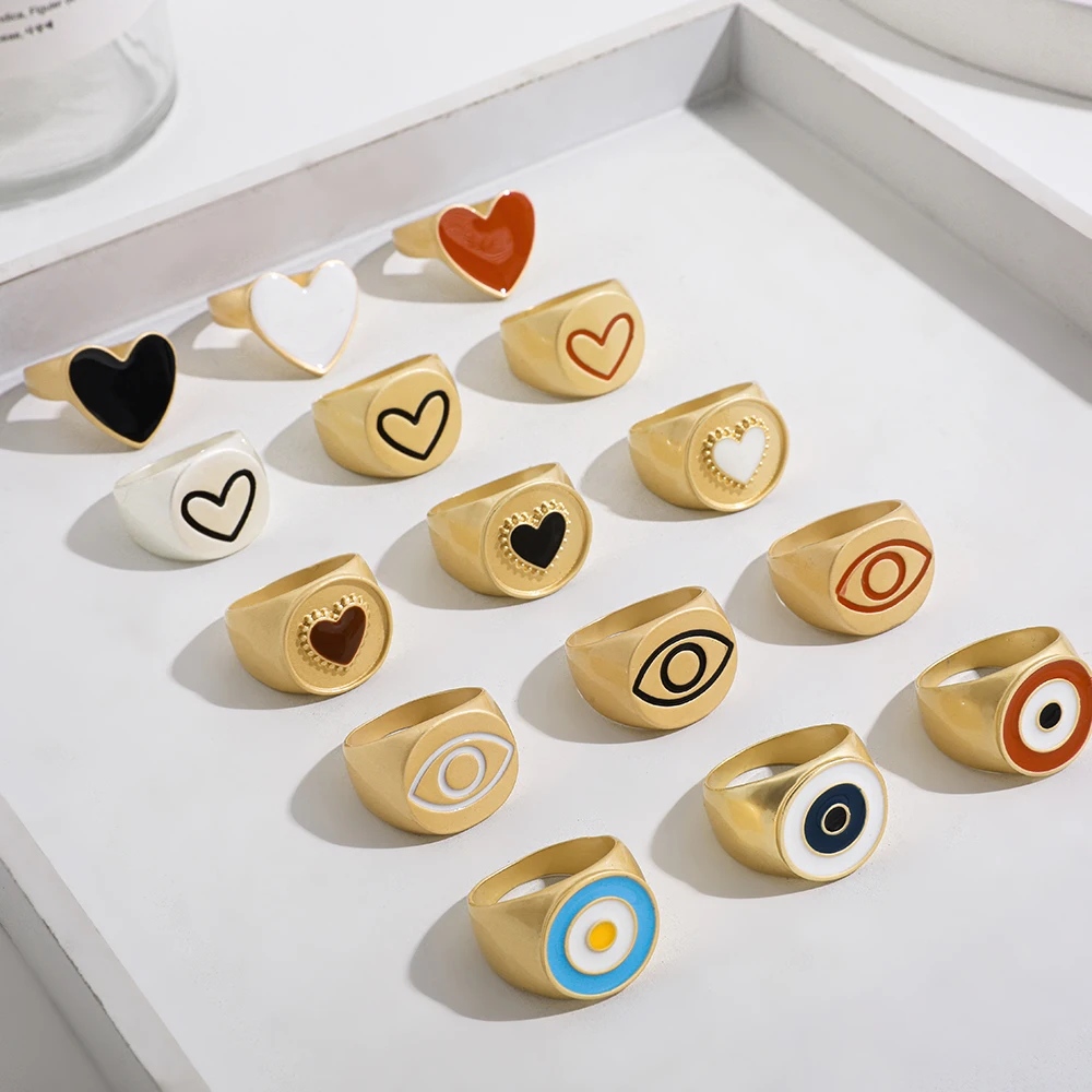 2021 симпатичные милые красочные эмалевые кольца с глазами и сердцем для женщин и девушек модные матовые золотые штабелируемые кольца на палец ювелирные изделия подарок Вечерние