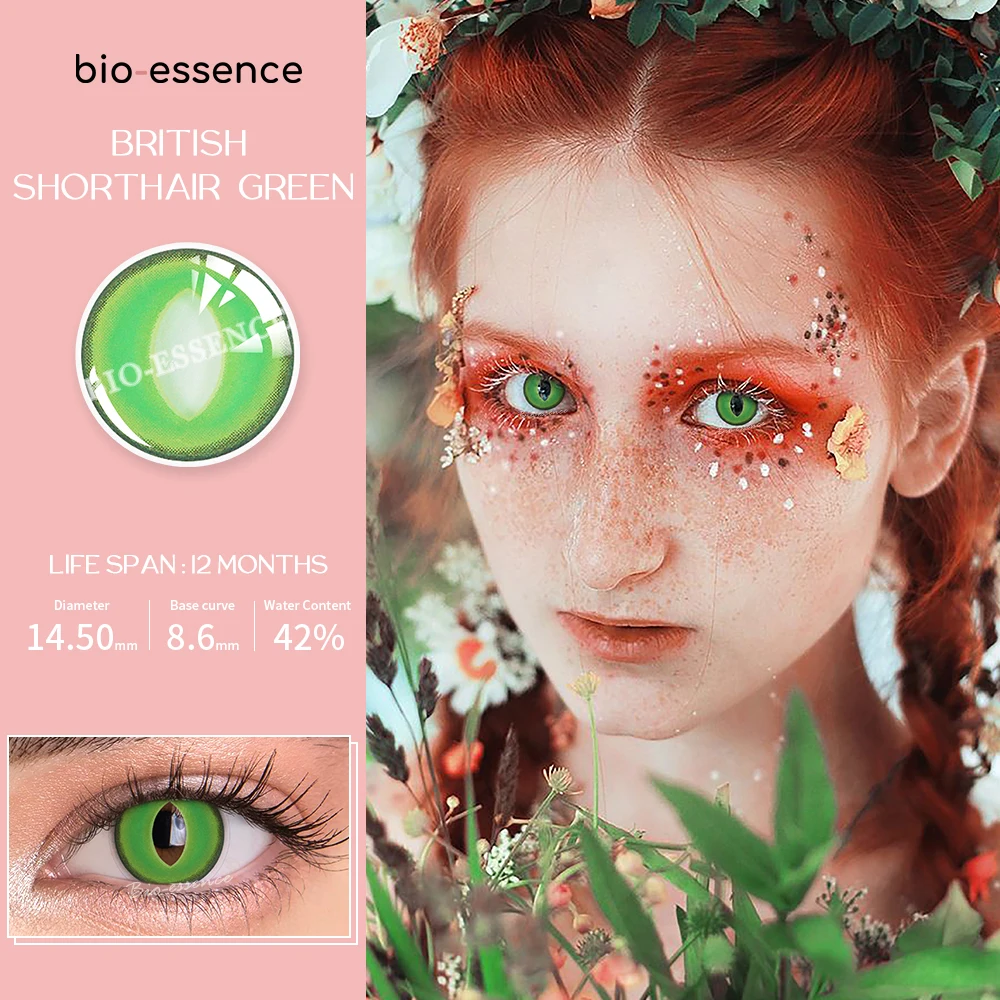 Bio-essence 1 пара контактных линз для глаз зеленая серия аниме косплей аксессуары цветные кошачьи линзы Хэллоуин Макияж линзы