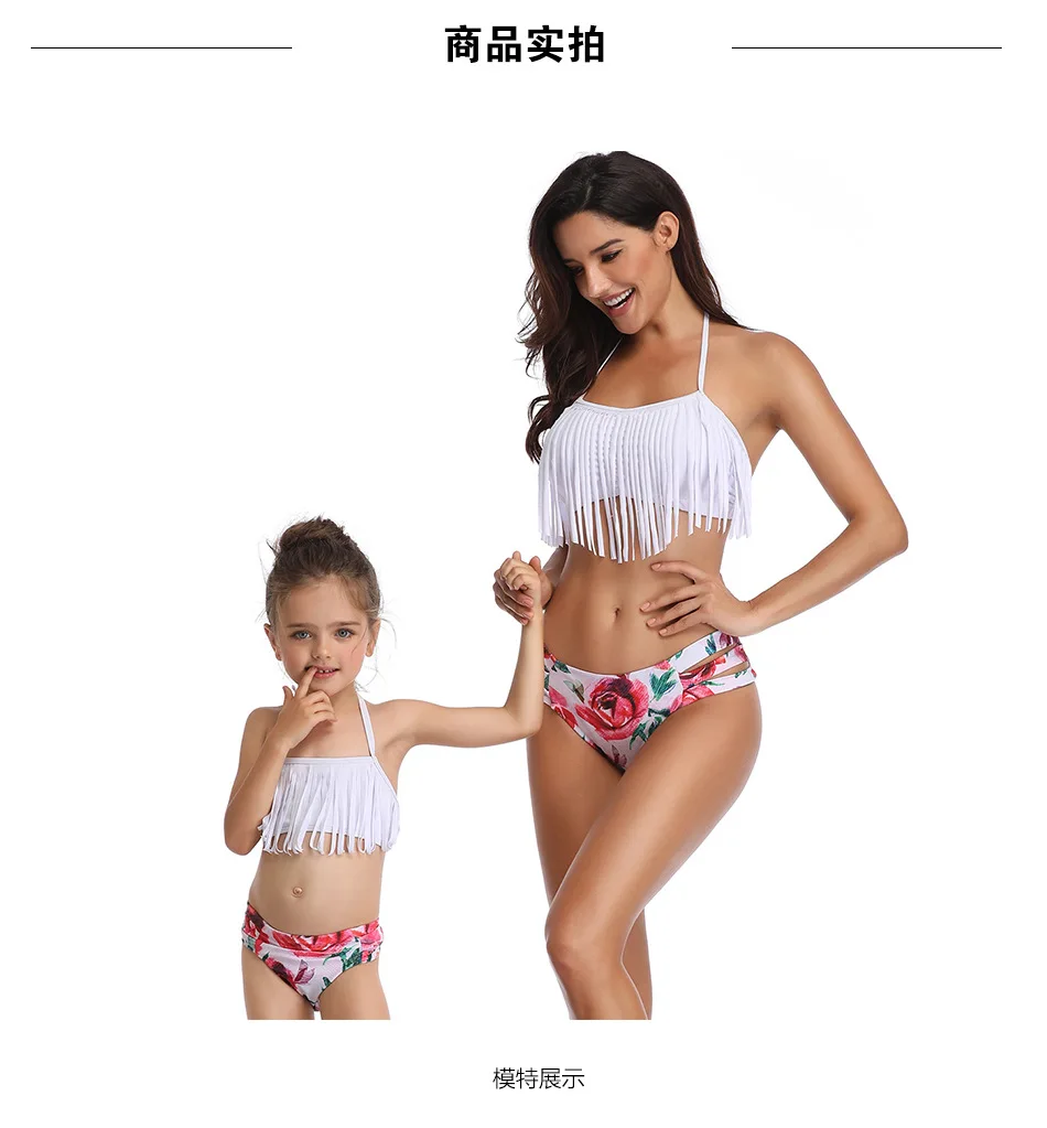 Купальник для матери и дочери с кисточками, сексуальный стиль, бикини, пляжная одежда, купальные костюмы, купальник для мамы и ребенка, семейный летний комплект