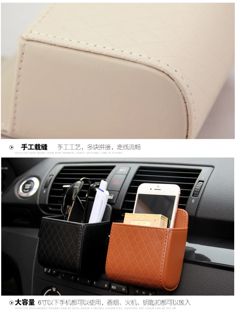 Автомобильная сумка для хранения, устанавливаемое на вентиляционное отверстие в салоне автомобиля приборной панели аккуратные подвесной кожаный Органайзер ящик очки держатель телефона для хранения Организатор автомобильные аксессуары