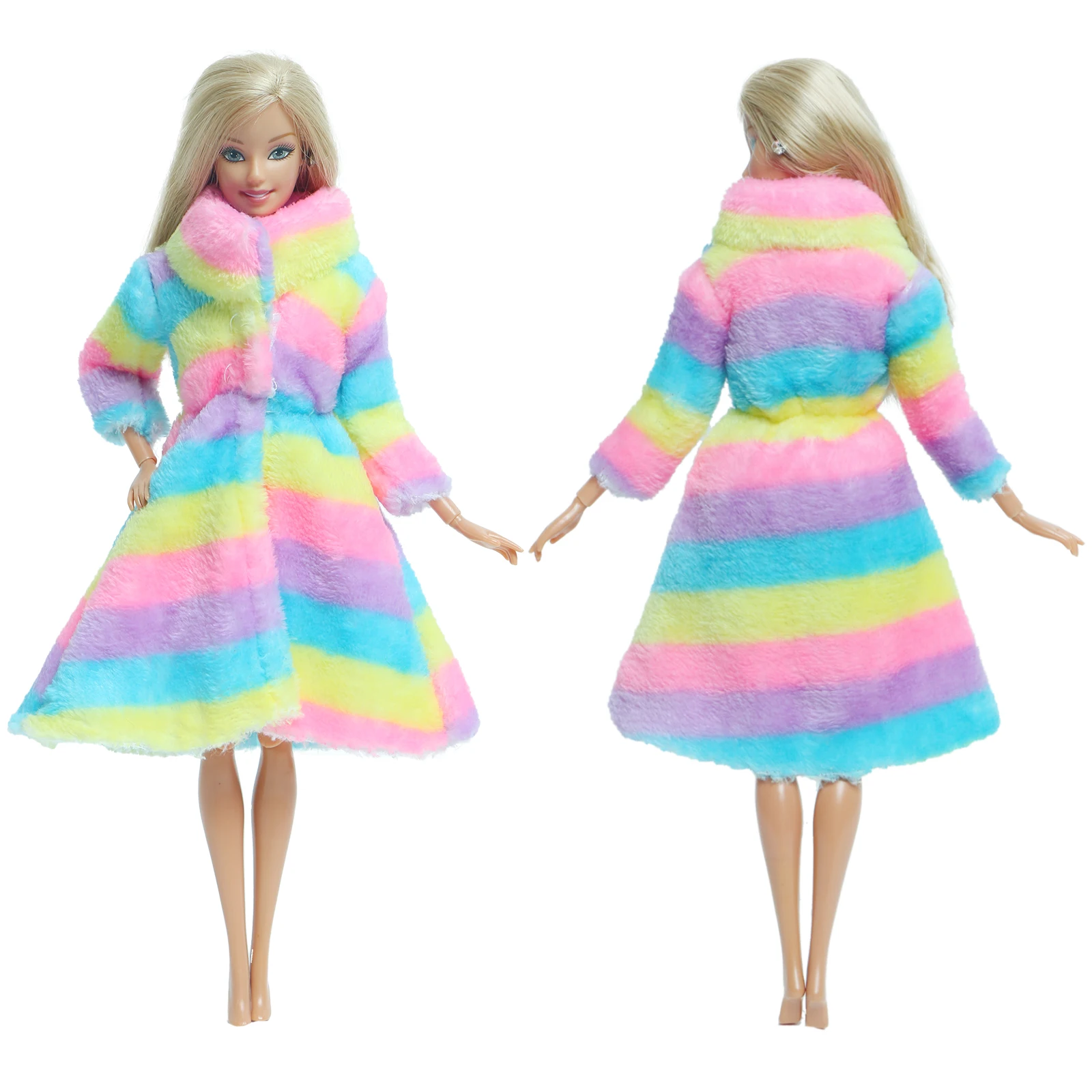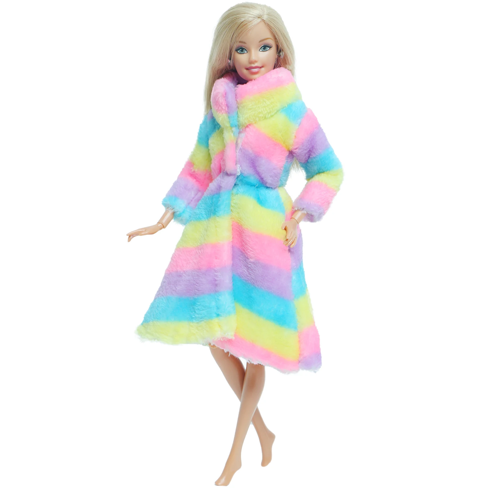 Платье для кукол BJDBUS, плюшевое пальто радужного цвета, зимняя одежда ручной работы, мягкая меховая одежда для кукол Барби, аксессуары для детей, кукольный домик, подарок