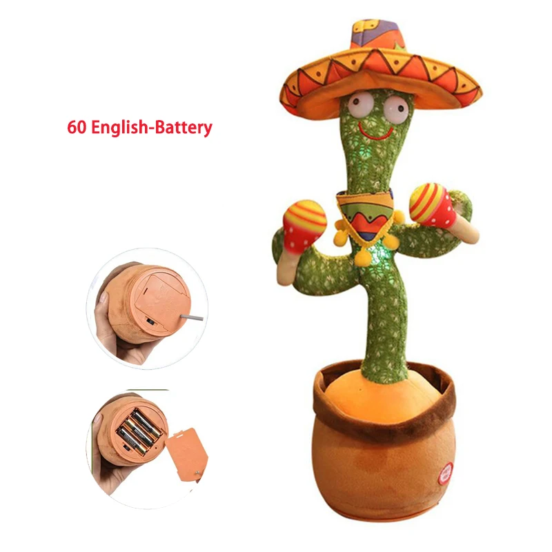 Особенности:1. Материал: игрушка-кактус использует pp хлопковый наполнитель, который является мягким и удобным, безопасным и здоровым.2. Раннее Образование: хорошее для раннего образования. Игрушки будут прыгать с ритмом, который может привлечь внимание детей.3. Забавные игрушки: игрушки Содержат 60 или 120 английских песен, вы можете научиться говорить и танцевать в течение нескольких часов, что принесет детям жизнь счастливого времени.4. Лучший подарок: веселая музыка и танцы очень подходят для создания приятной атмосферы и для проведения вечеринок.5. Ежедневное техническое обслуживание: Не мойте в воде, избегайте высокой температуры и Остерегайтесь сильного давления.Функция:60 или 120 английских песен [запись + Освещение + танцы + обучение разговору]Характеристики:Размер: 32 смМатериал наполнения: полипропиленовый хлопокПесни: 60 или 120 английских песенВерсия батареи: 3 батарейки АА (не входят в комплект)Версия USB для зарядки: со встроенным аккумулятором