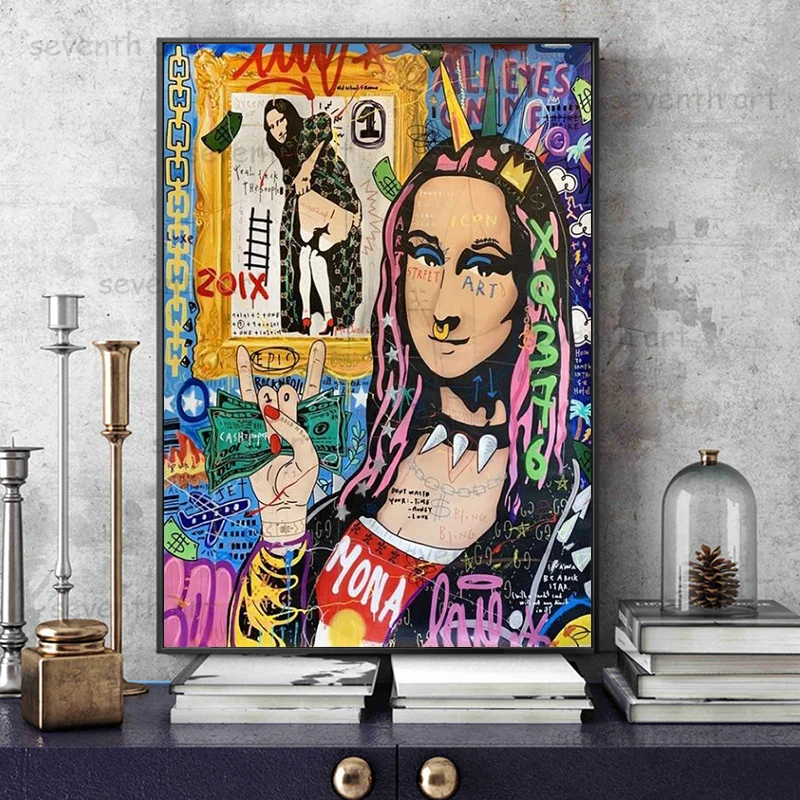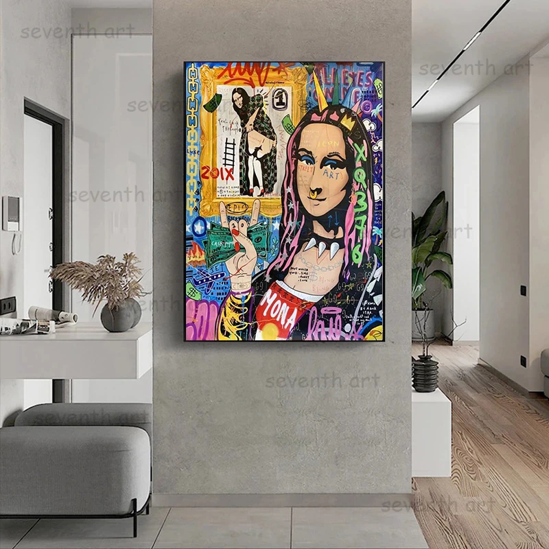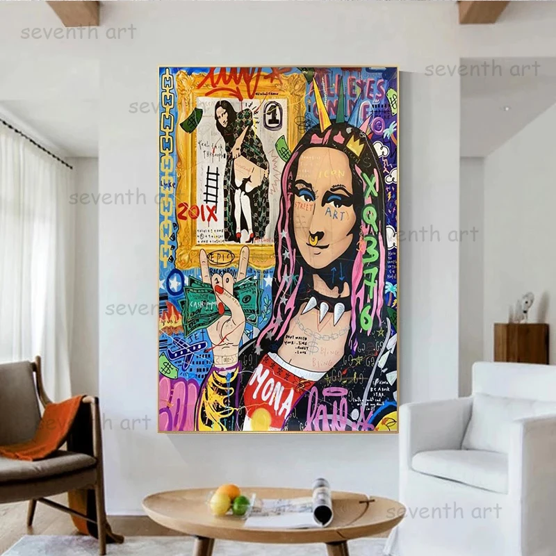 Граффити искусство Мона Лиза холст фотообои настенные картины для гостиной украшение для дома