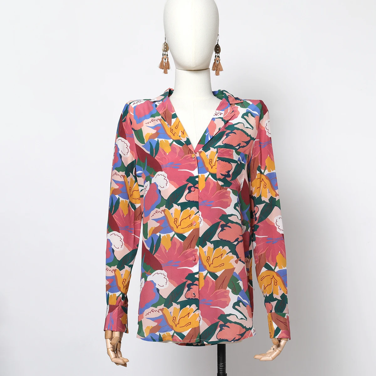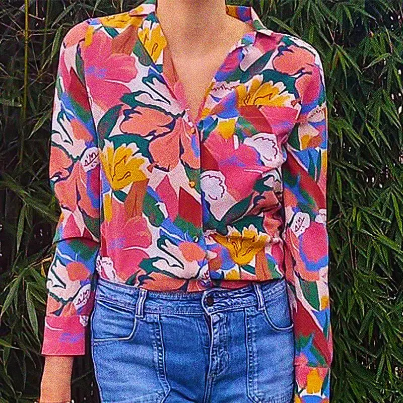 Блузка женская с цветочным принтом, элегантная рубашка с воротником...