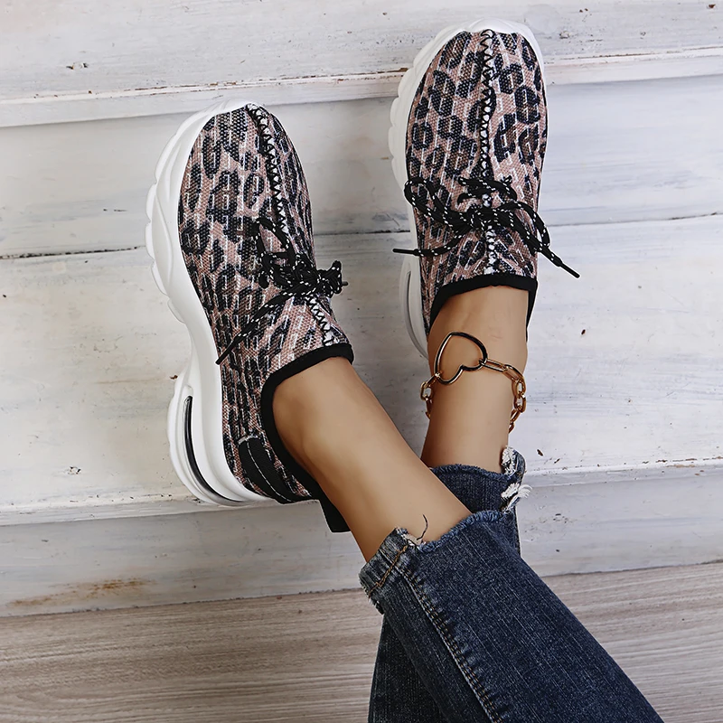 Уличные кроссовки для бега, женские легкие дышащие спортивные кроссовки, удобная обувь для бега, женские кроссовки на платформе с леопардовым принтом