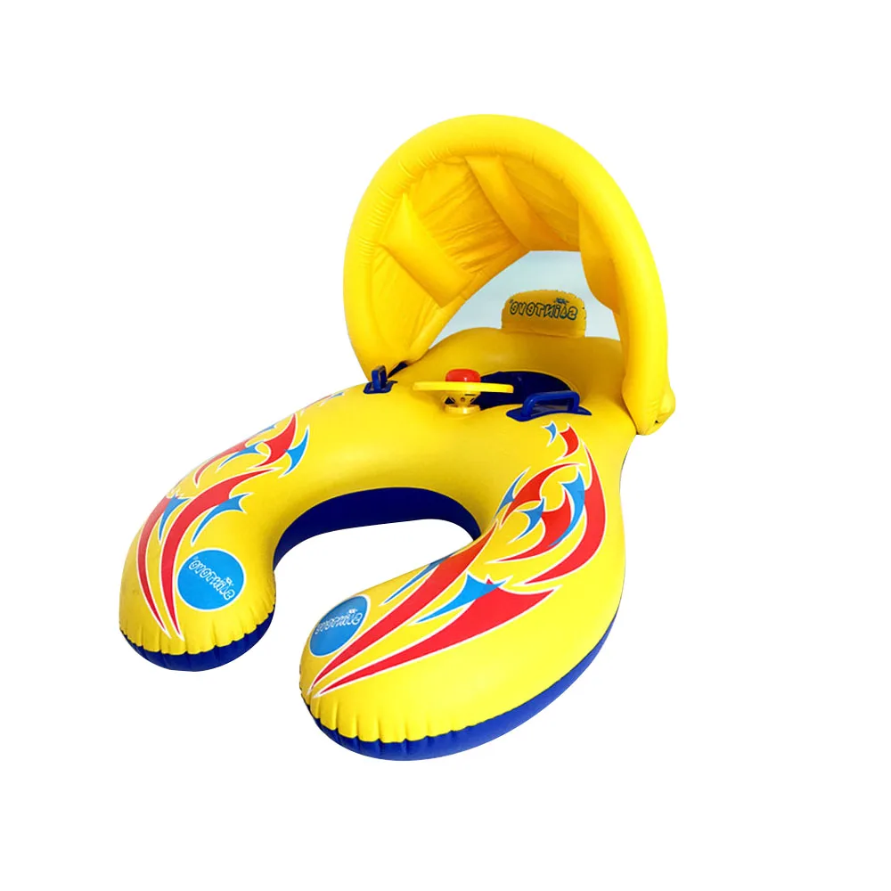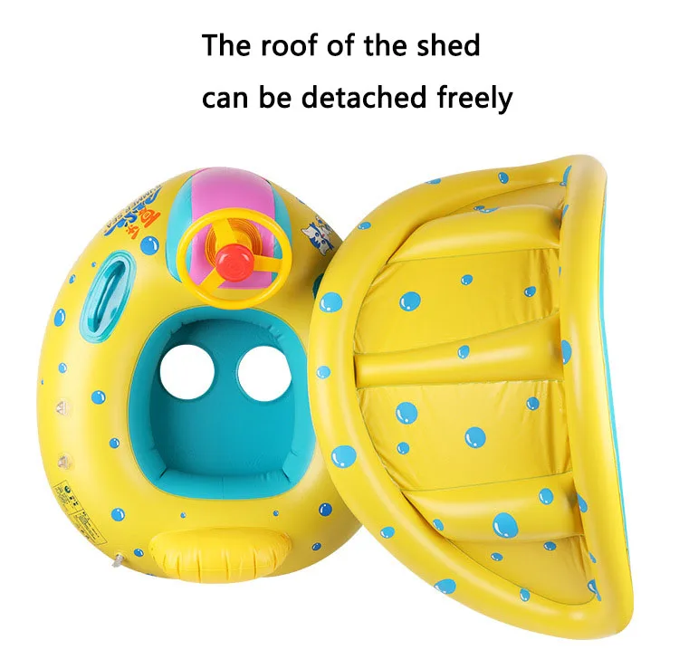 Особенности:- 100% абсолютно новый и высококачественный.-Специальный дизайн для защиты ребенка, безопаснее и бесплатно для детей плавать.-Гибкость использования дома в нашем детском бассейне.-Изготовлен из экологически безопасного пвх, долговечного и долгосрочного использования.-Надувной и регулируемый солнцезащитный козырек для защиты детей от солнца. Характеристики: Название продукта: Надувное сиденье для плавания для детей Материал: Экологический PVCColor: желтый + синий размер продукта: Approx.73 * 65*60 см (после надувания) посылка детали: 1 детское кольцо для плавания PISCINA SEAT