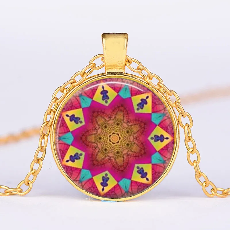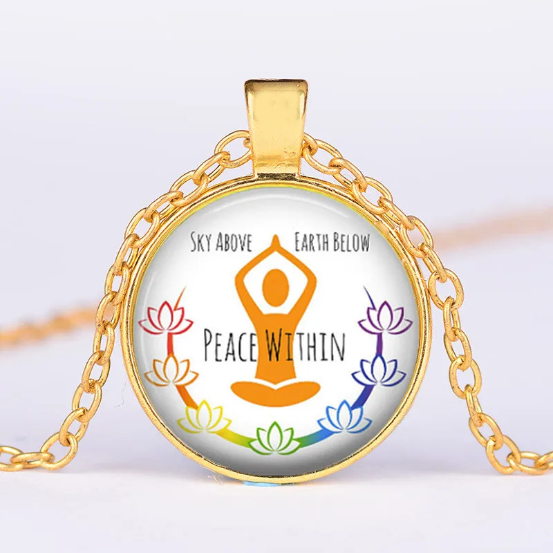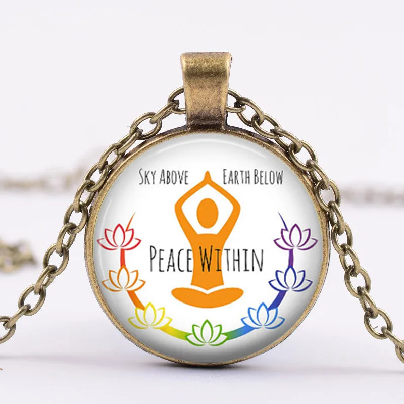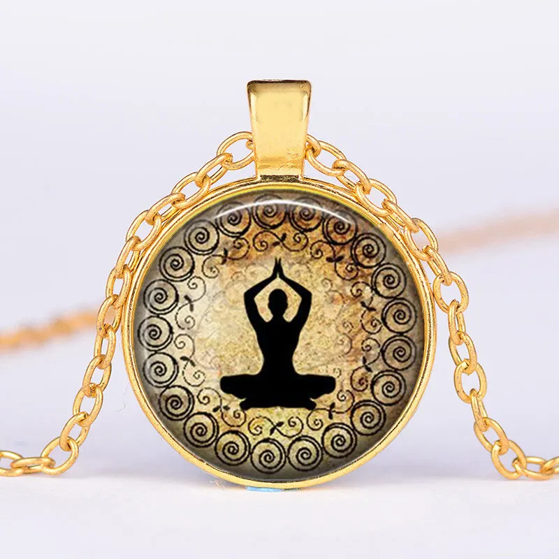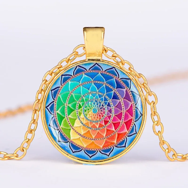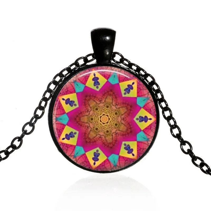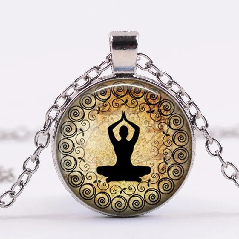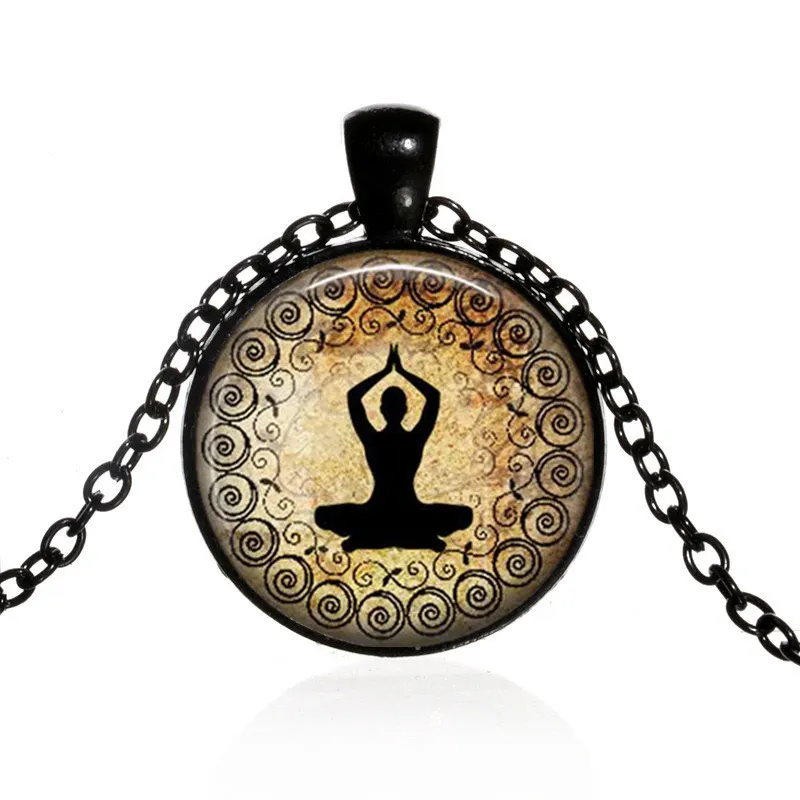 Индийское колье на санскрите с символом Ом АУМ Будда Лотос посеребренный цветок жизни Мандала искусство стеклянная цепочка Ювелирные изделия