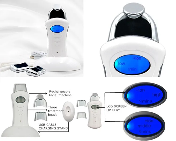 3 головки микротока лифтинг глубокое проникновение nu tech кожи ион красоты массажер для лица гальванический аппарат для спа-ухода за кожей лица машина