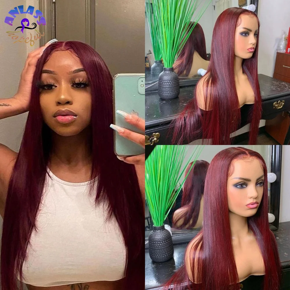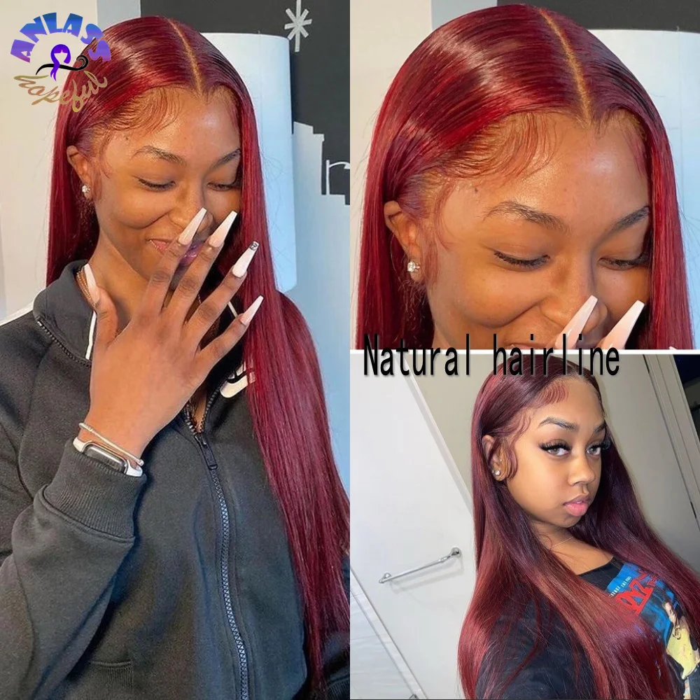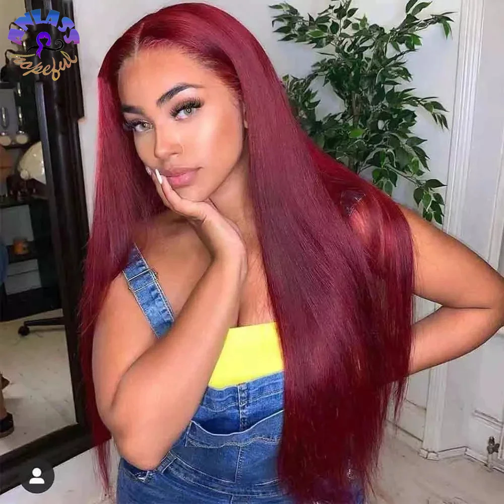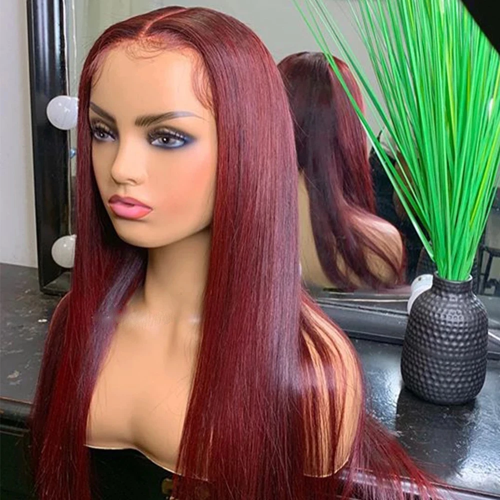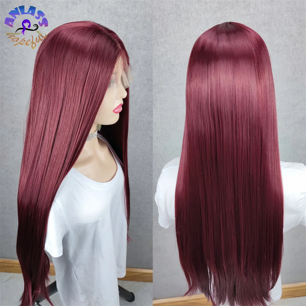 Парик женский шелковистый прямой, термостойкий для косплея средней длины, с кружевом спереди, бордовый