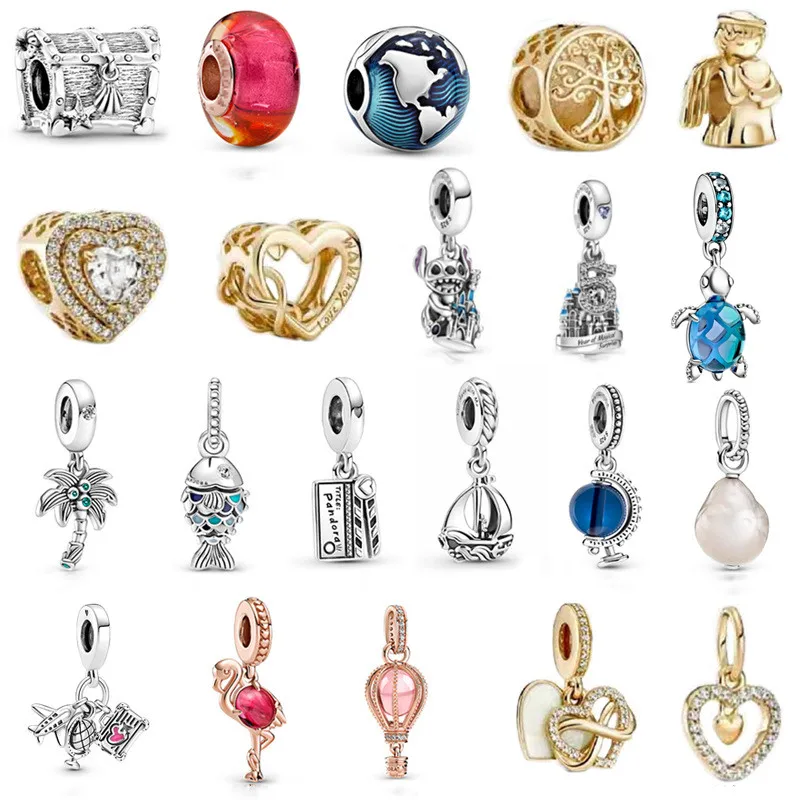 100% 925 пробы серебро океан очарование кулон Новый замок розовый горячий воздух воздушный шар стеклянные бусины, соответственные Пандоре обаятельные браслеты ювелирные изделия